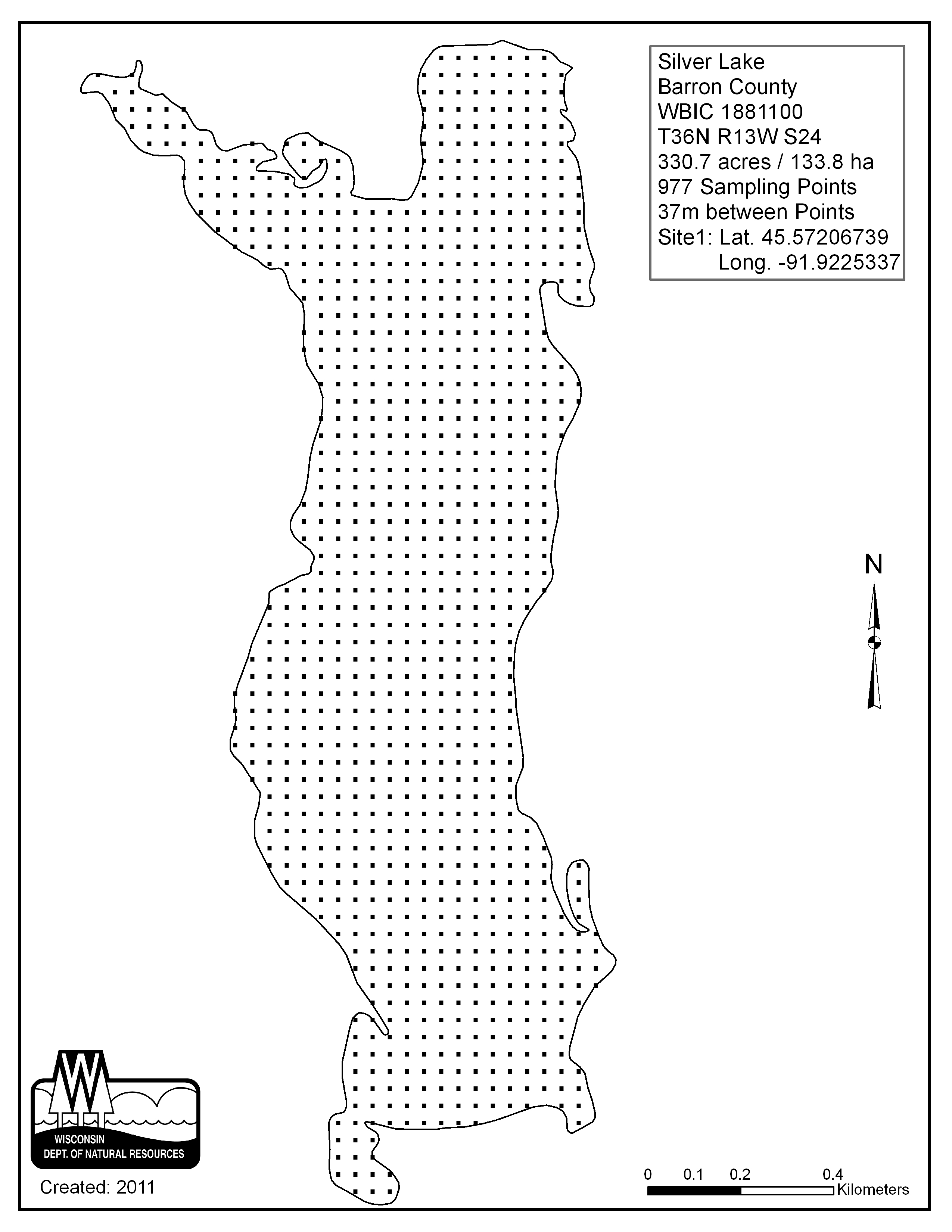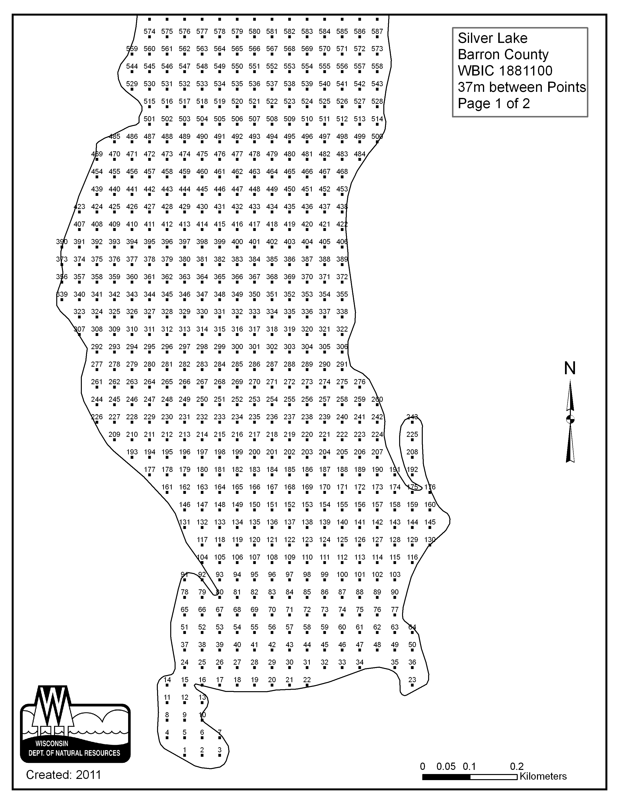 Silver Lake, Barron County - Aquatic Plant Sampling Map (1) (37 mpts)
