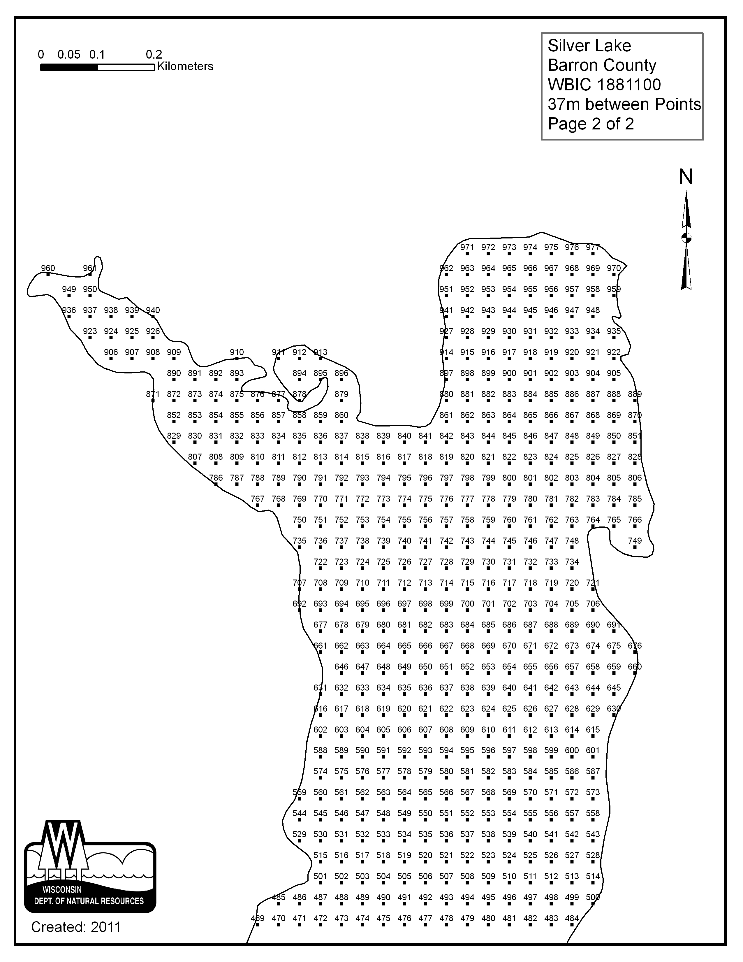 Silver Lake, Barron County - Aquatic Plant Sampling Map (2) (37 mpts)