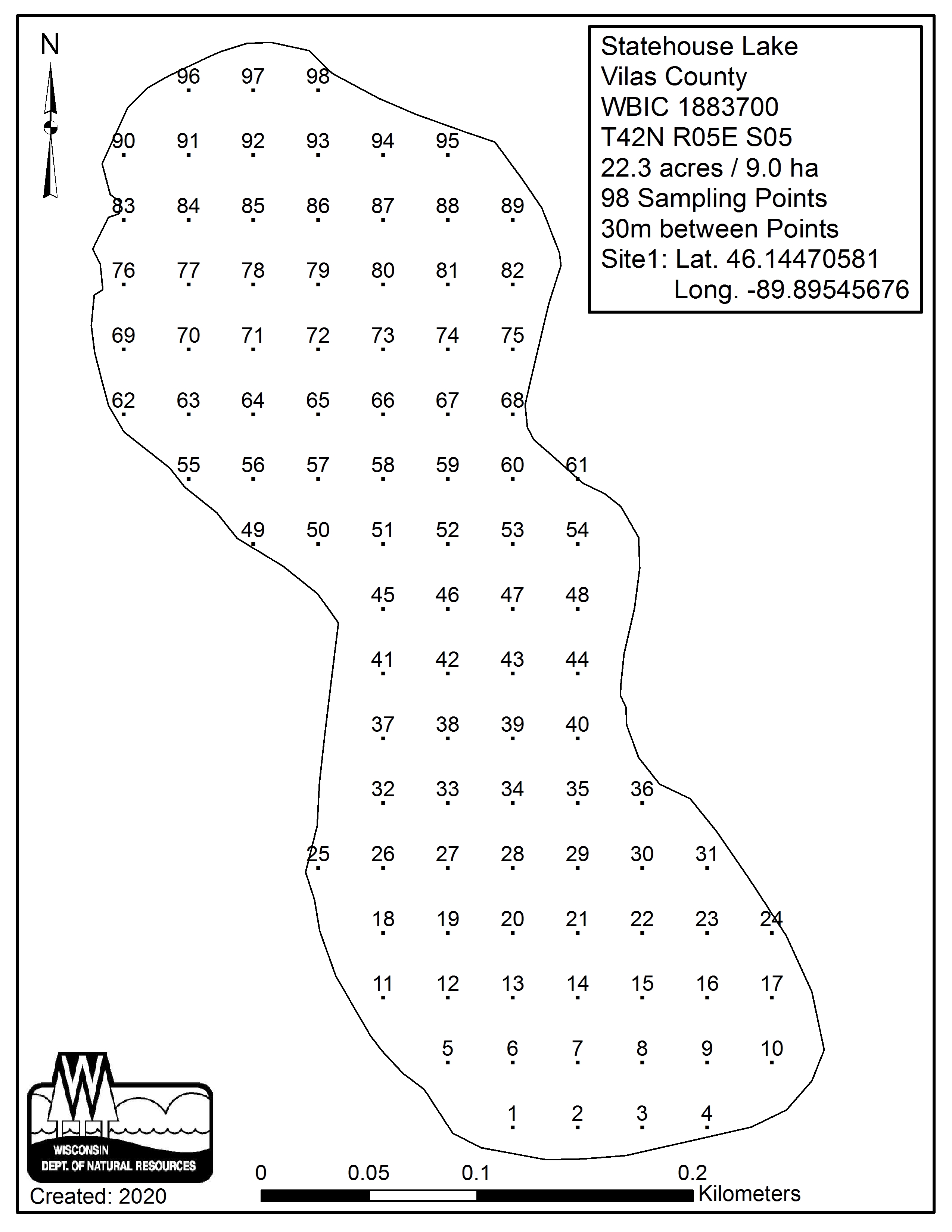 Statehouse Lake, Vilas County - Aquatic Plant Sampling Map (30 mpts)