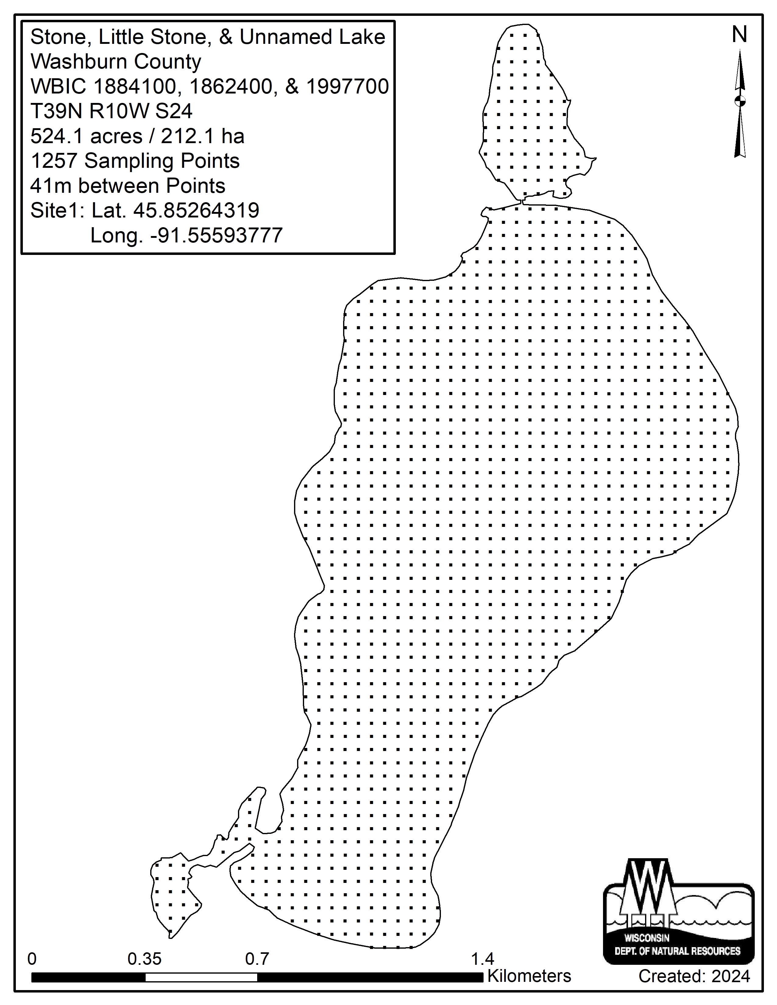 Stone & Little Stone Lake, Washburn County - Aquatic Plant Sampling Map (2)(41 mpts)