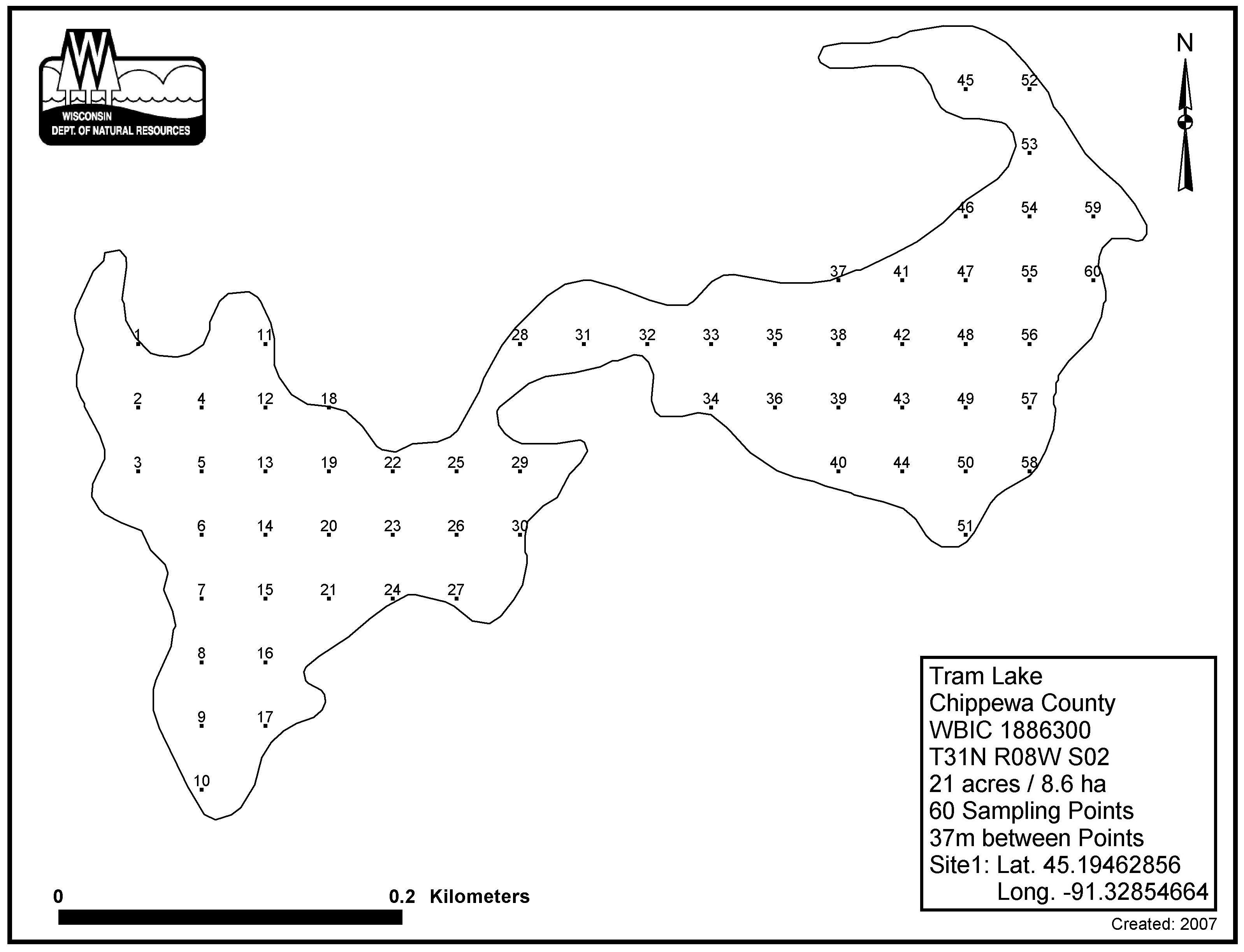 Tram Lake, Chippewa County - Aquatic Plant Sampling Map (37 mpts)