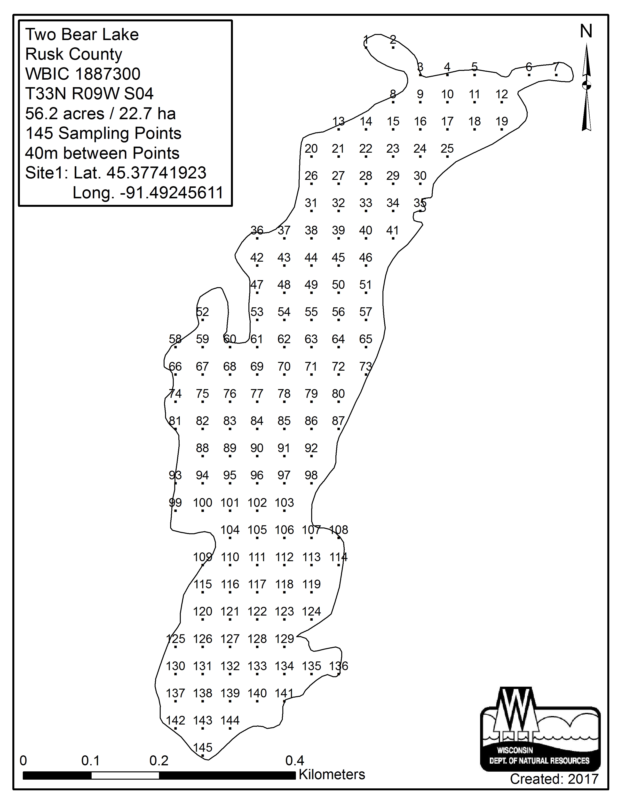 Two Bear Lake, Rusk County - Aquatic Plant Sampling Map (40 mpts)