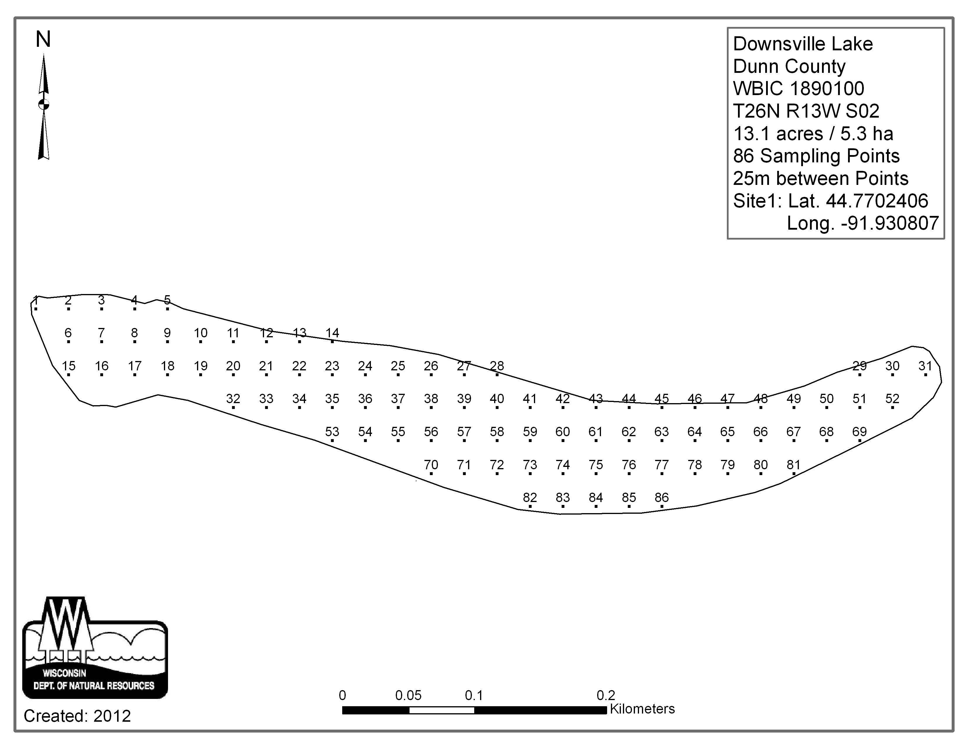 Downsville Lake, Dunn County - Aquatic Plant Sampling Map (25 mpts)