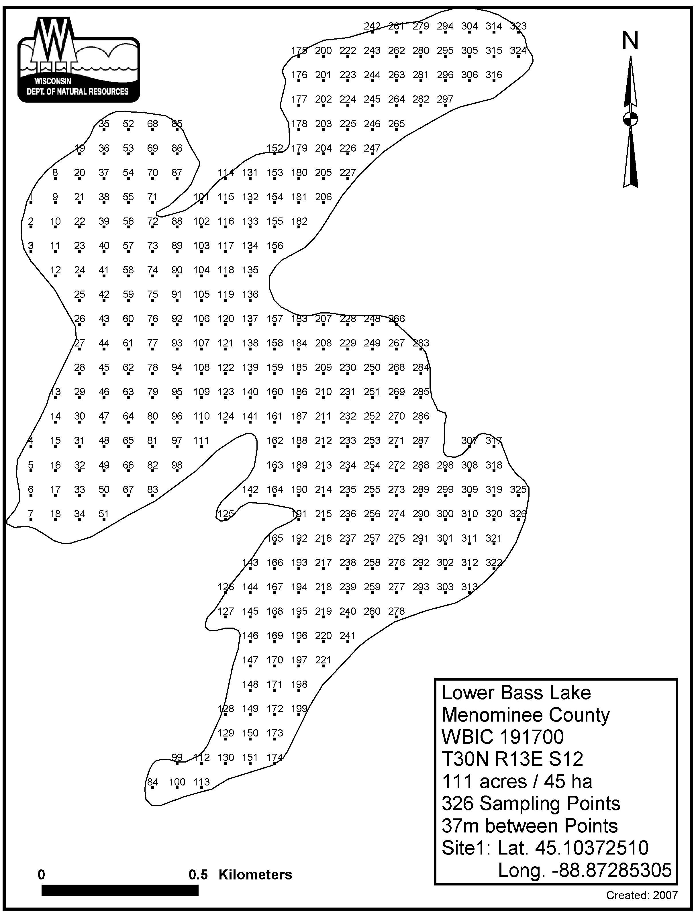 Bass Lake, Lower, Menominee County - Aquatic Plant Sampling Map (37 mpts)
