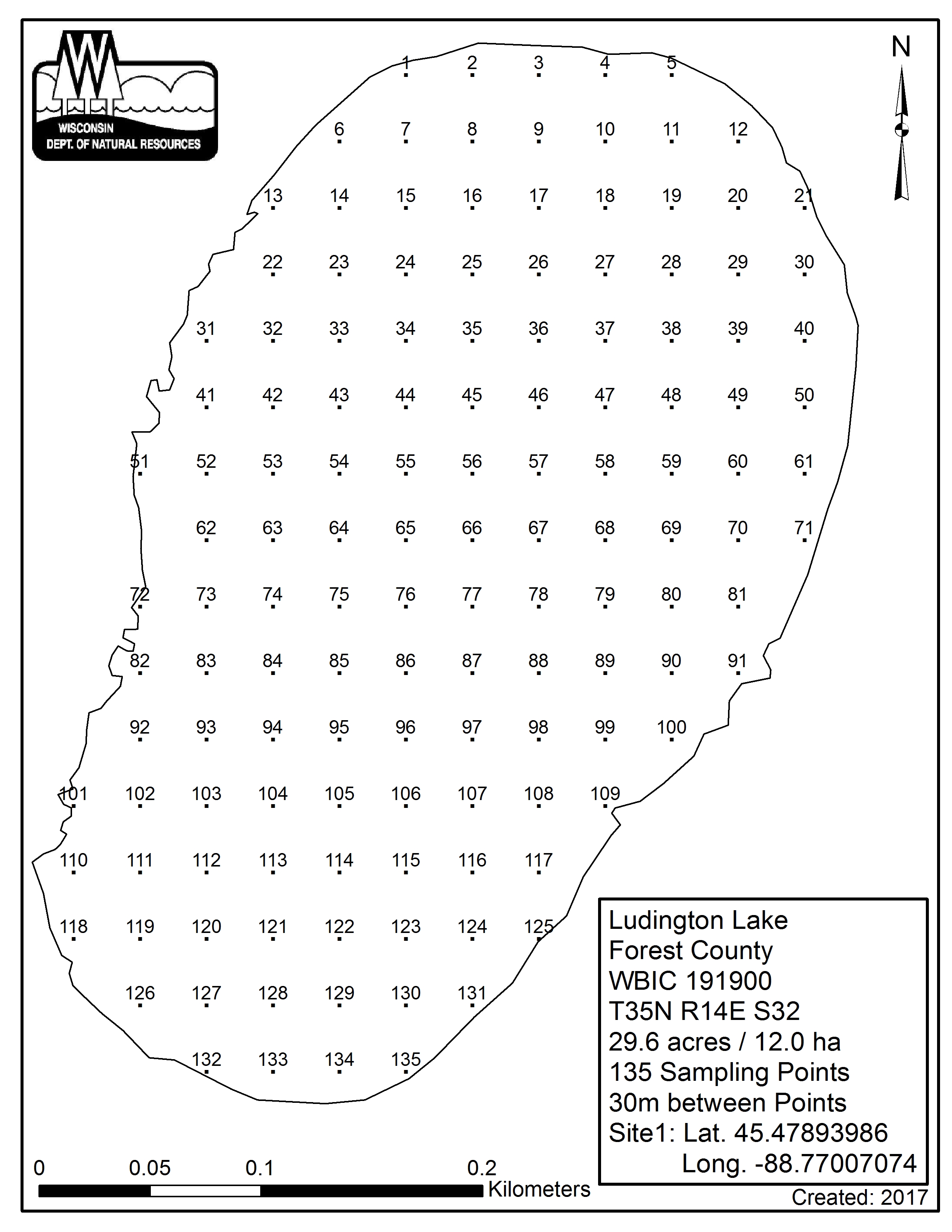Ludington Lake, Forest County - Aquatic Plant Sampling Map (30 mpts)