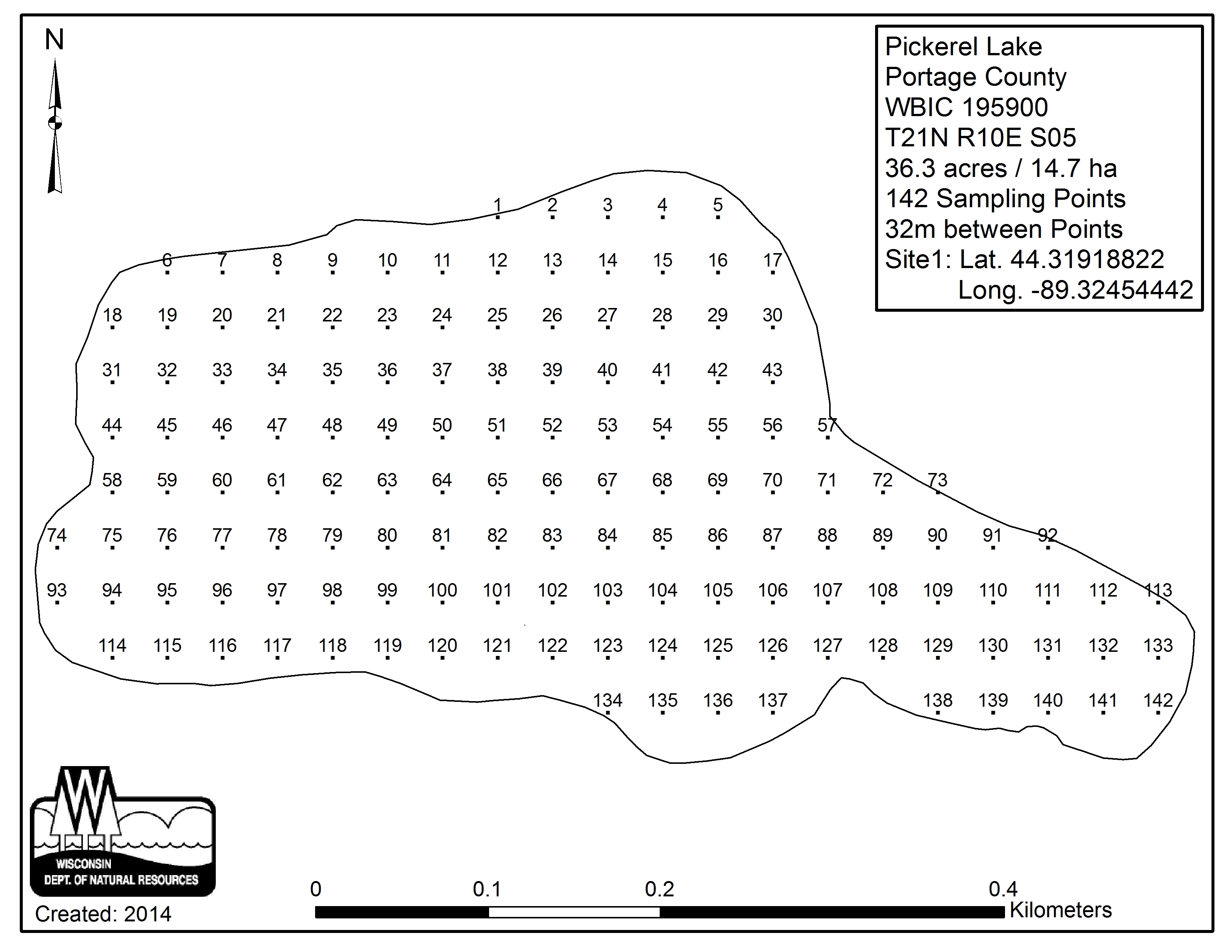 Pickerel Lake, Portage County - Aquatic Plant Sampling Map (32 mpts)