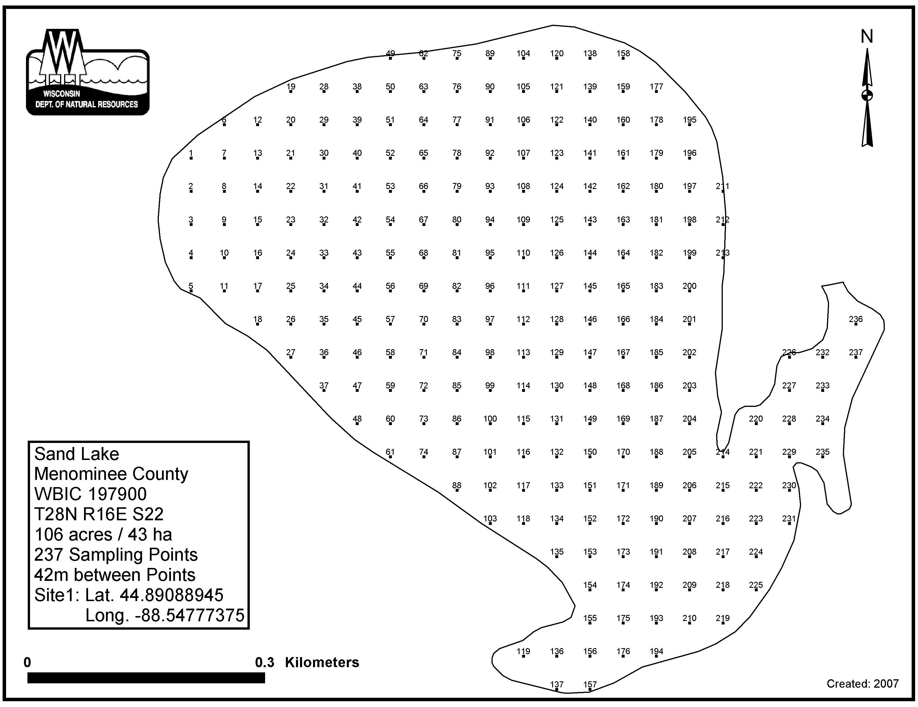 Sand Lake, Menominee County - Aquatic Plant Sampling Map (42 mpts)