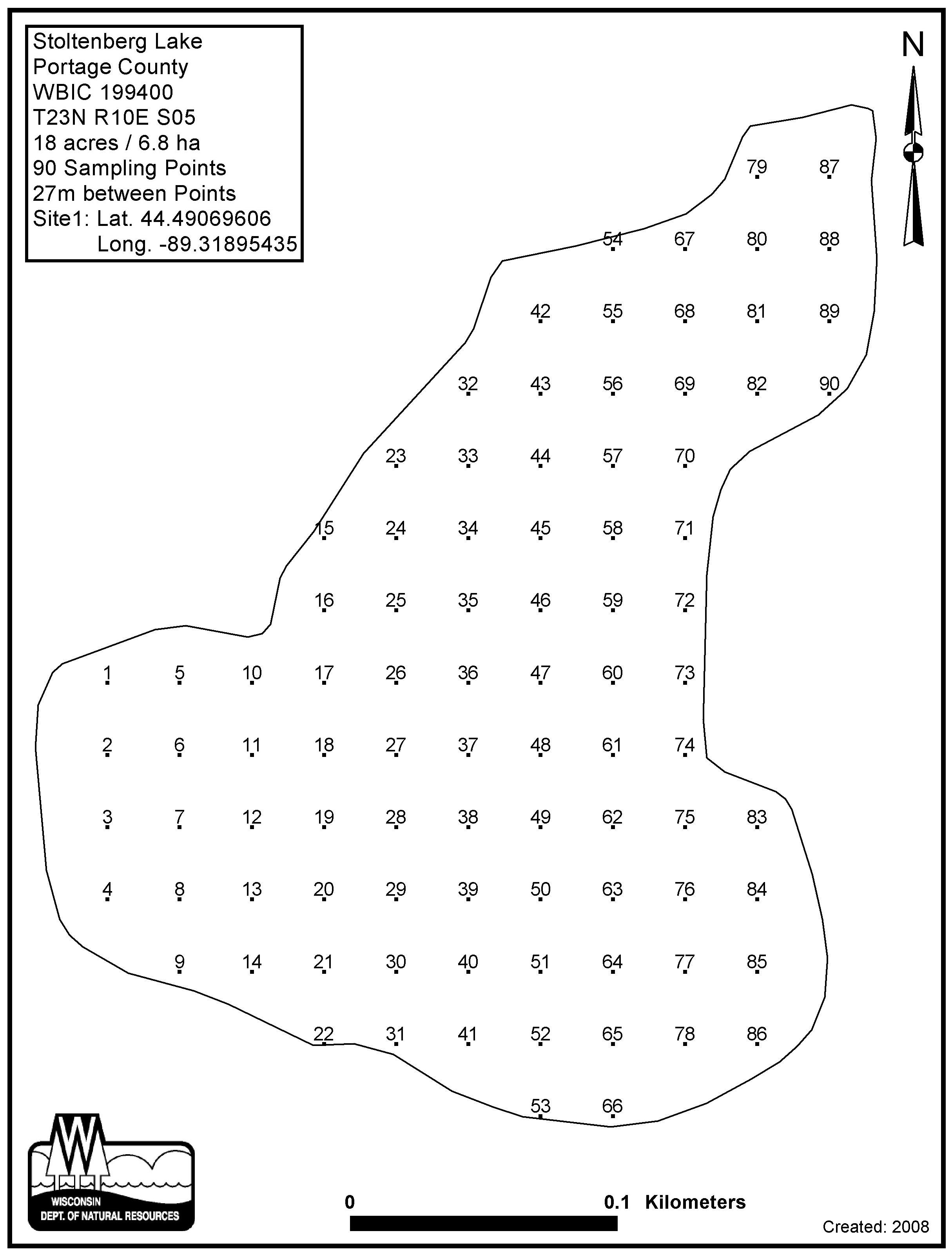 Stoltenburg Lake, Portage County - Aquatic Plant Sampling Map (25 mpts)