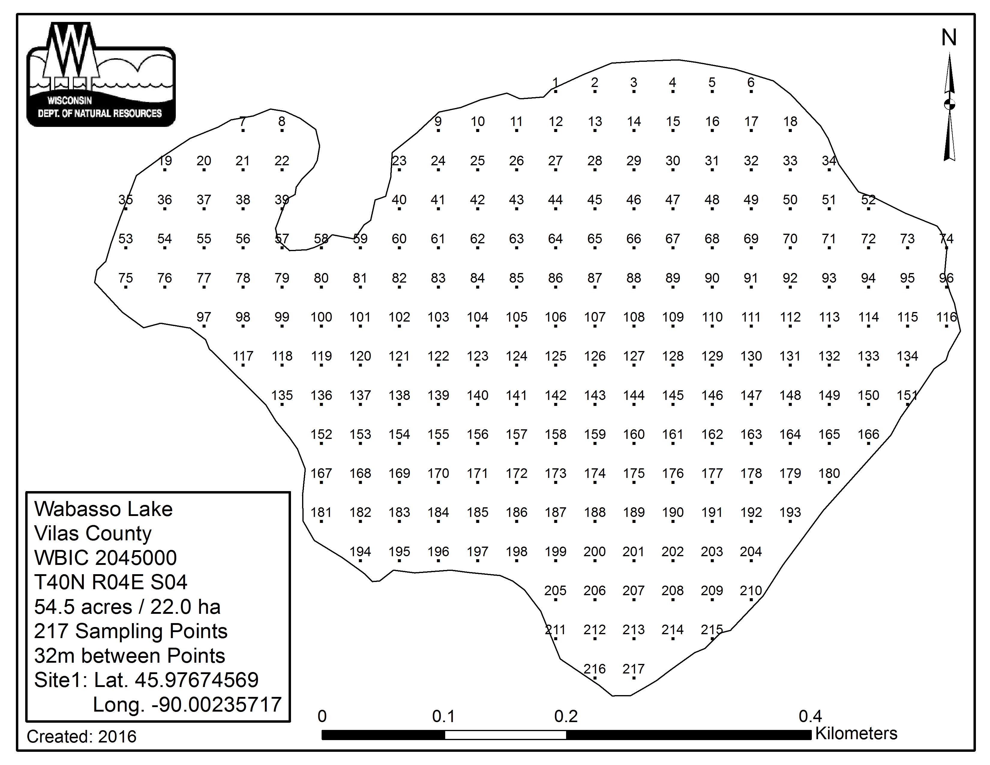 Wabasso Lake, Vilas County - Aquatic Plant Sampling Map (32 mpts)