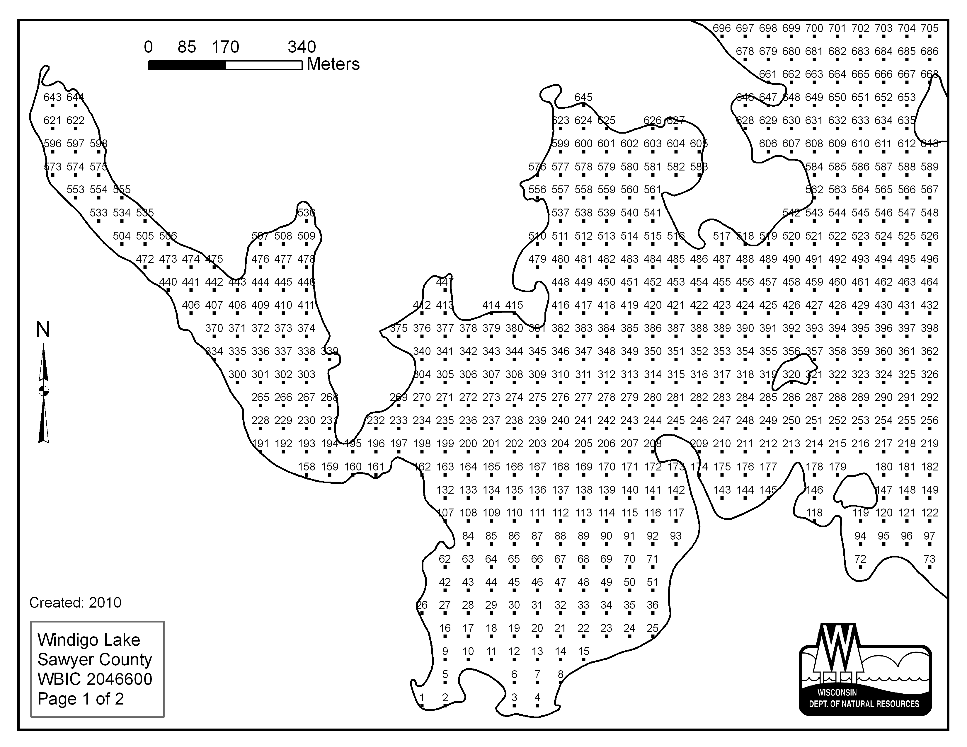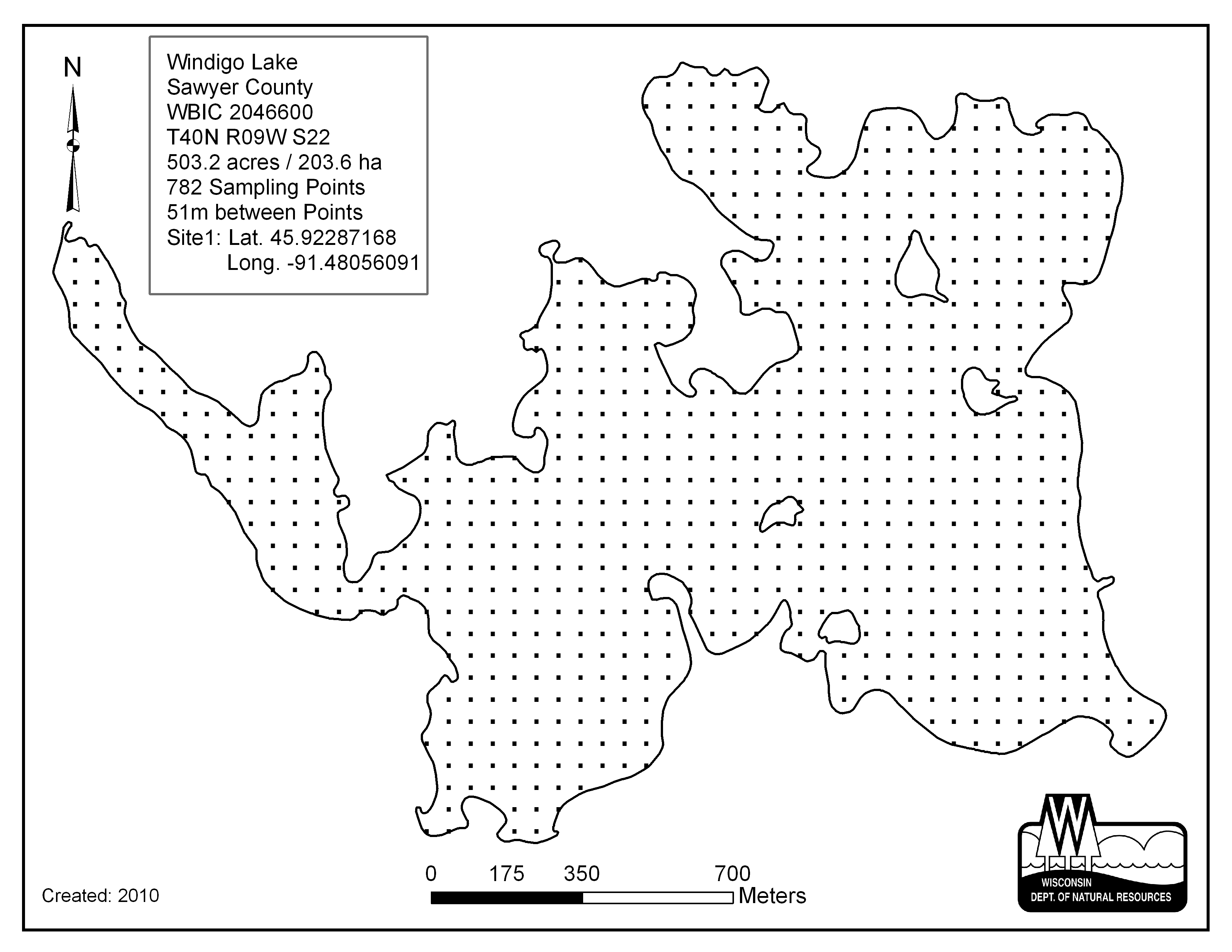 Windigo Lake, Sawyer County - Aquatic Plant Sampling Map (2)(51 mpts)