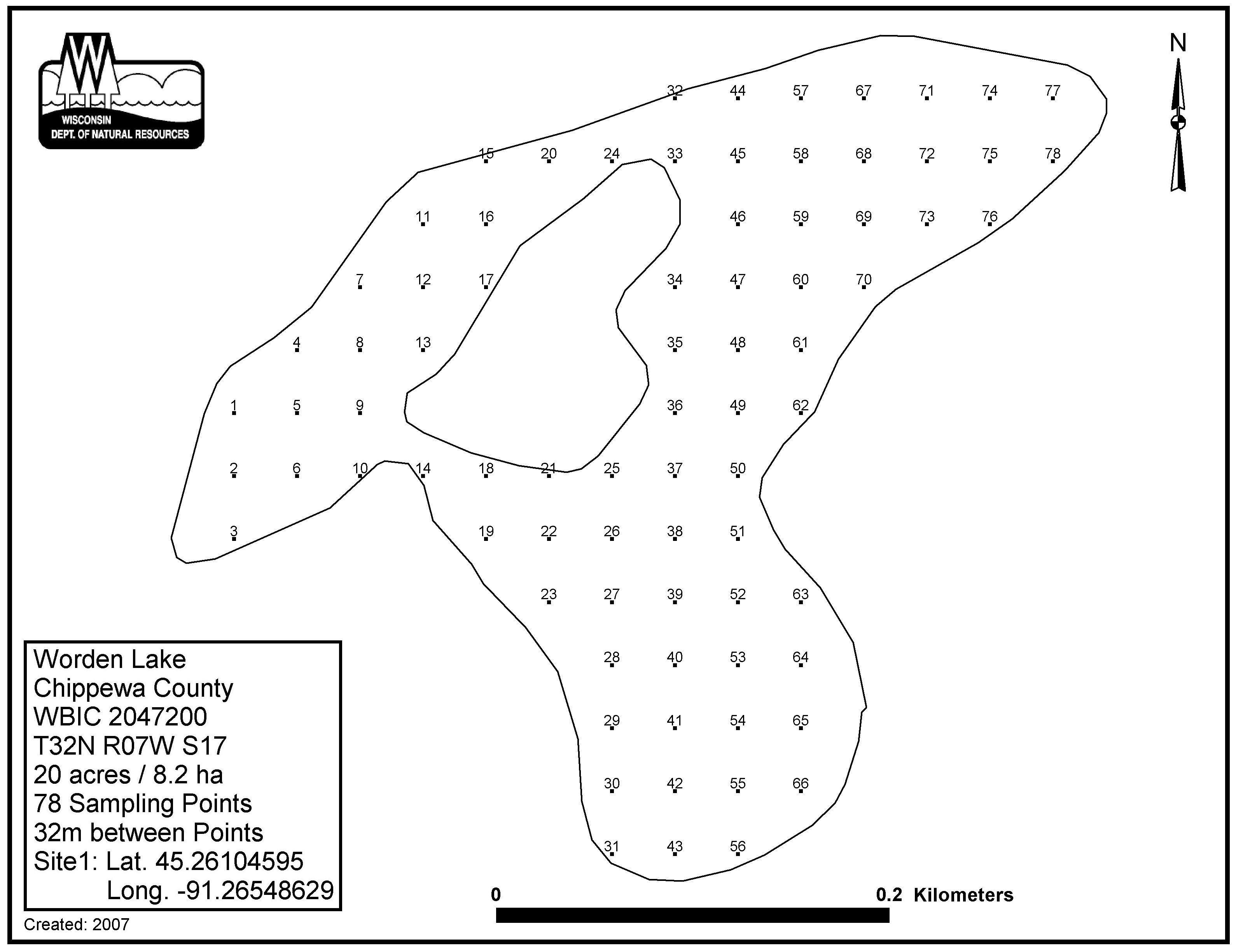 Worden Lake, Chippewa County - Aquatic Plant Sampling Map (32 mpts)