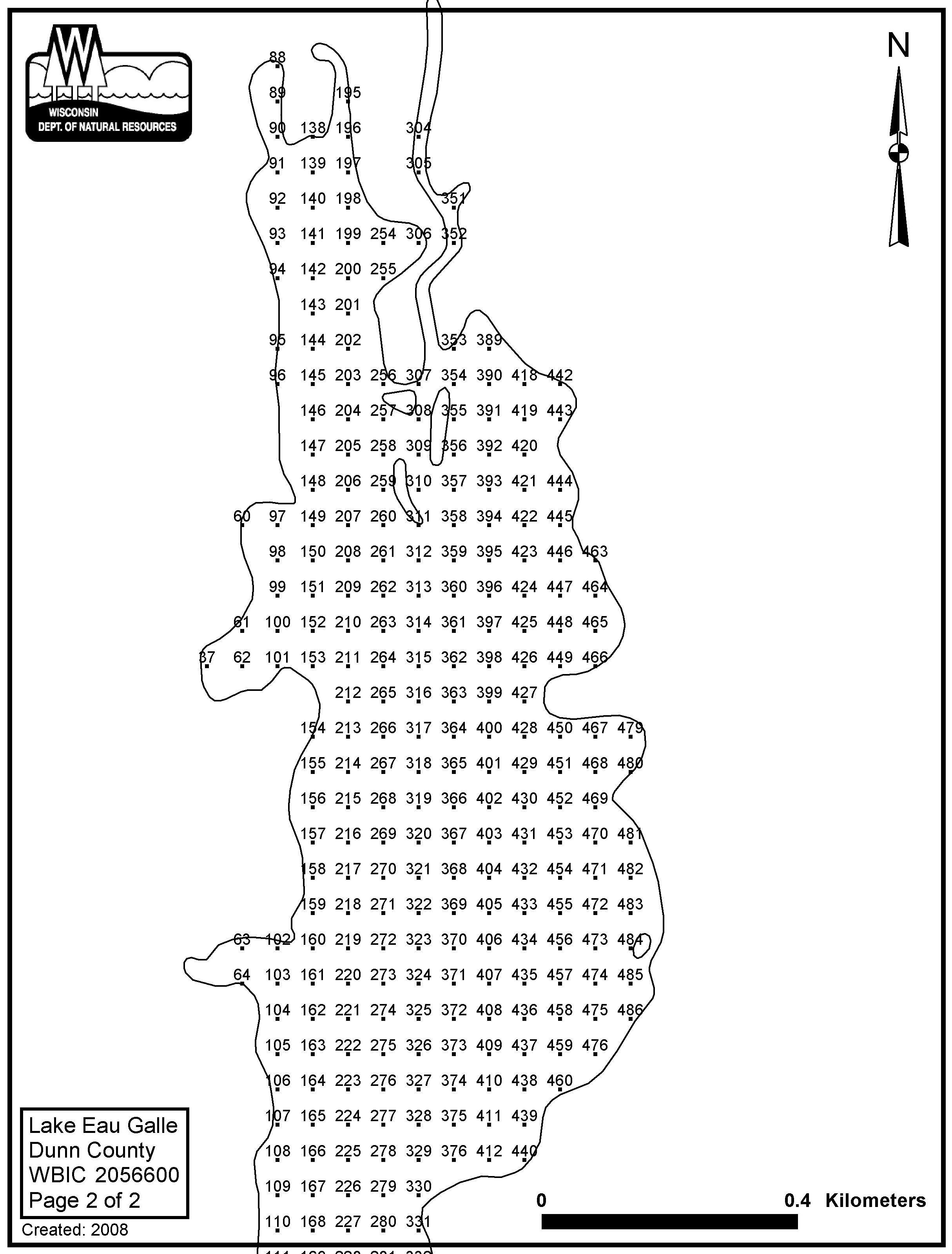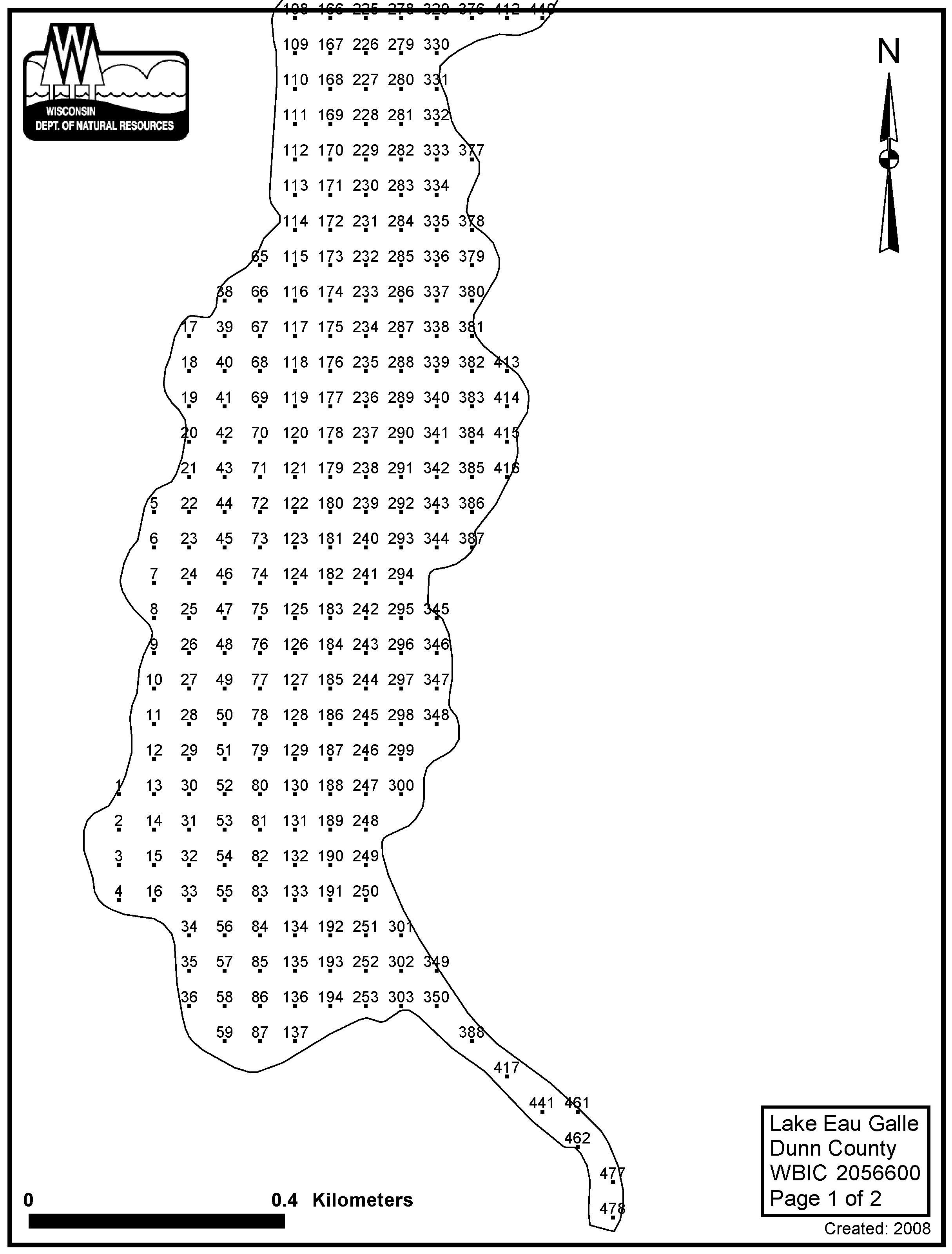 Lake Eau Galle, Dunn County - Aquatic Plant Sampling Map (2)(55 mpts)