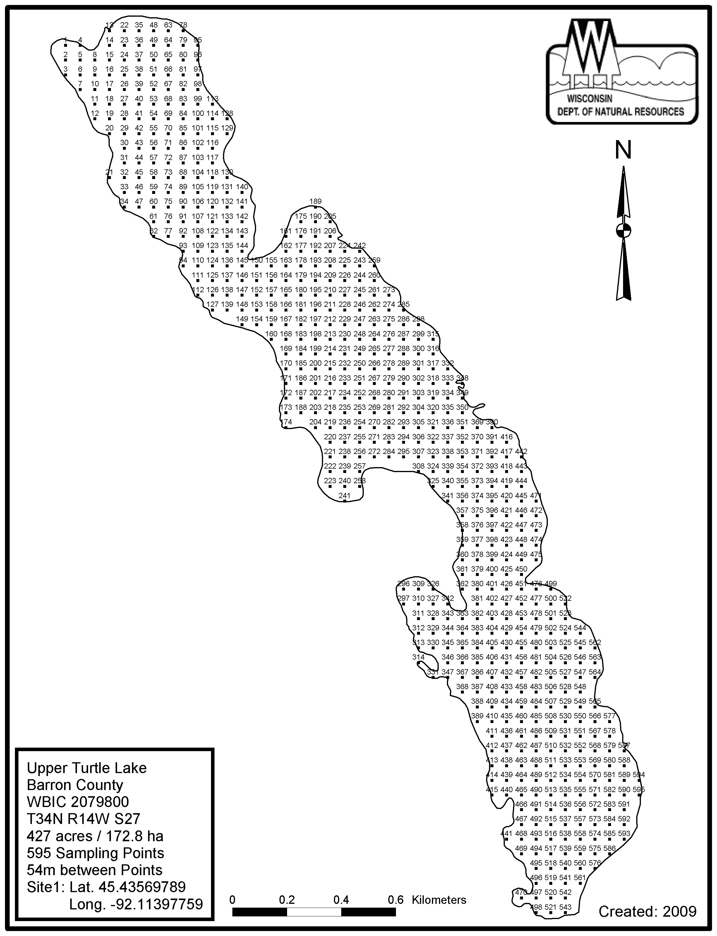 Upper Turtle Lake, Barron County - Aquatic Plant Sampling Map (54 mpts)