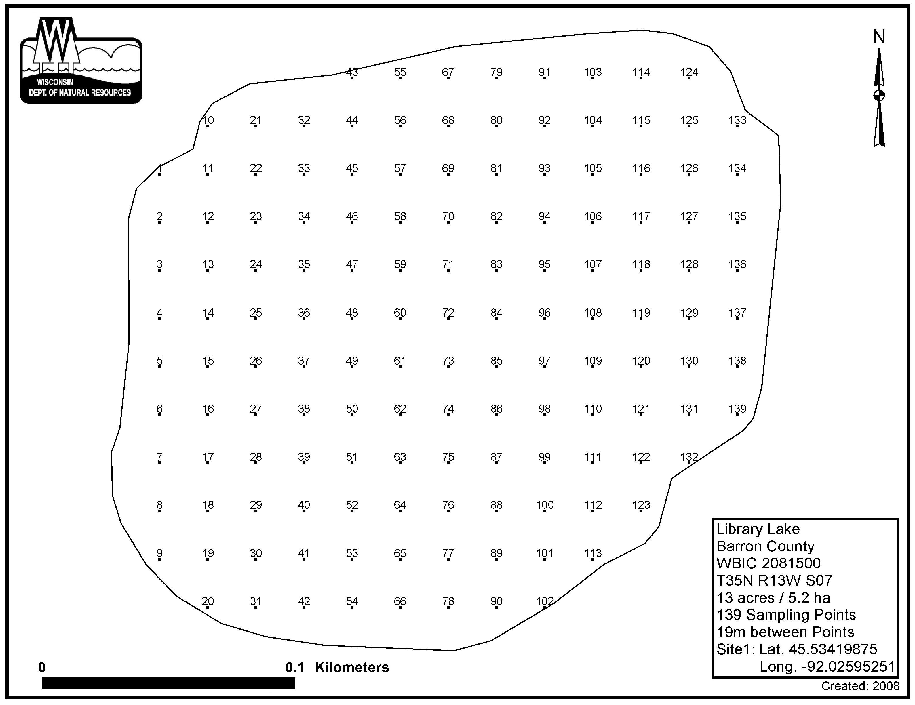 Library Lake, Barron County - Aquatic Plant Sampling Map (19 mpts)
