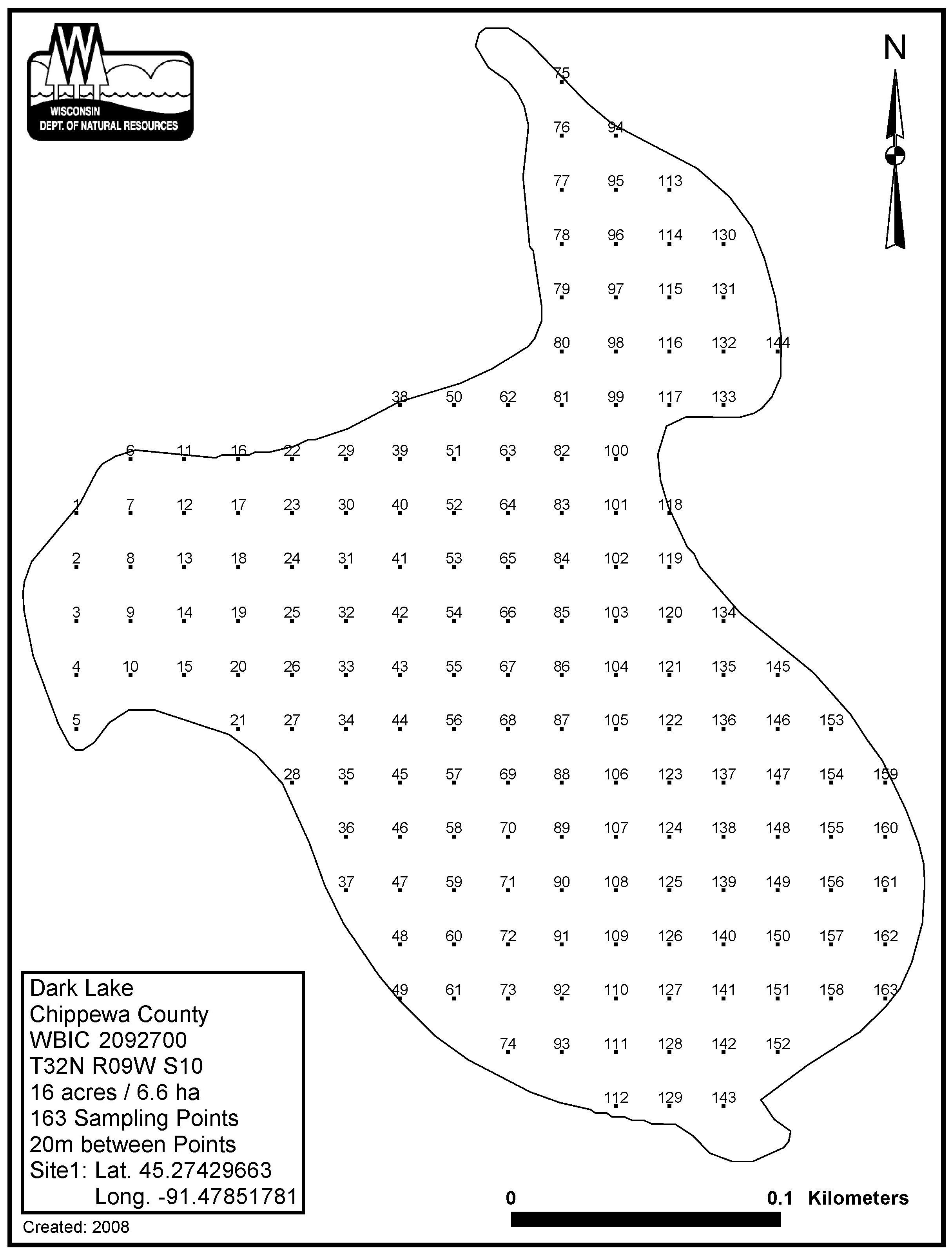 Dark Lake, Chippewa County - Aquatic Plant Sampling Map (20 mpts)