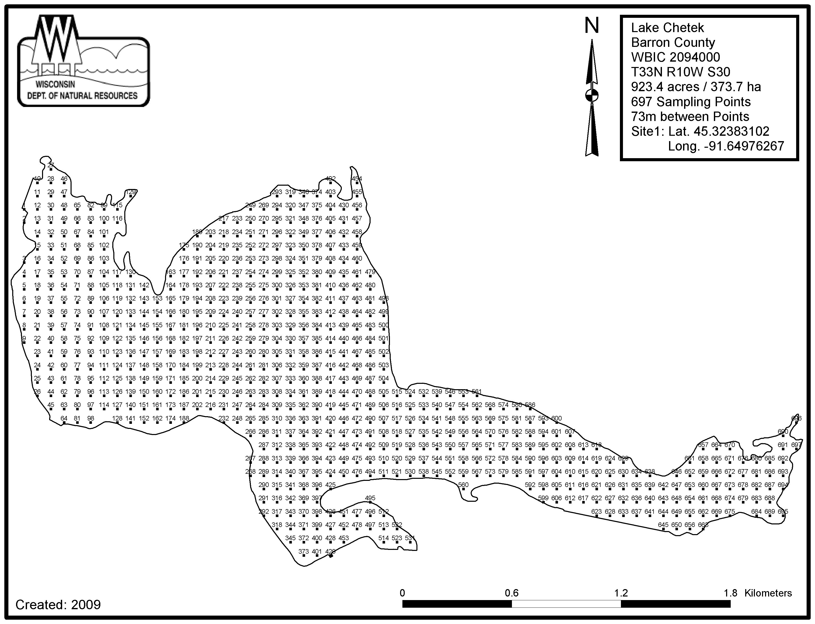Lake Chetek, Barron County - Aquatic Plant Sampling Map (73 mpts)