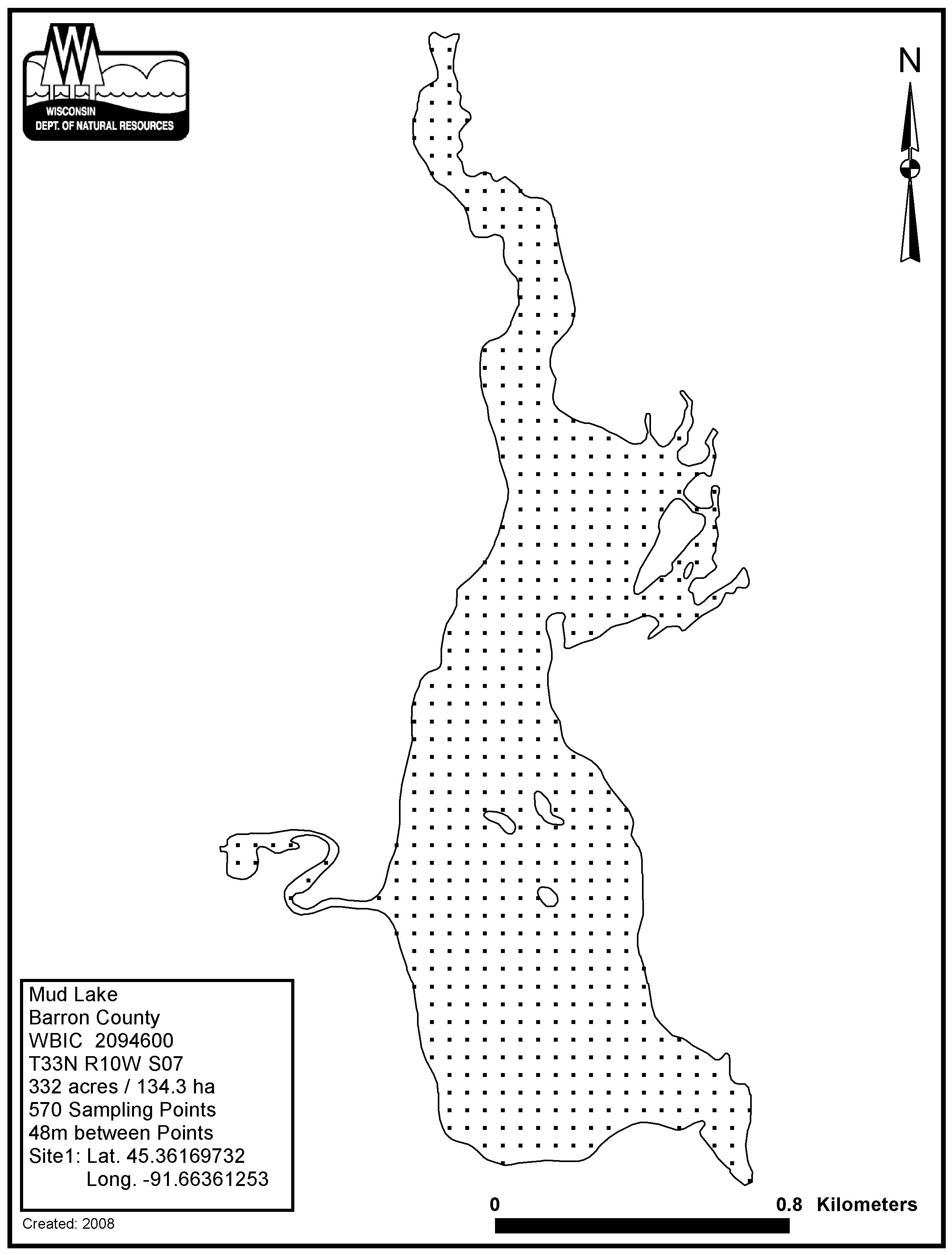 Mud Lake, Barron County - Aquatic Plant Sampling Map (48 mpts)