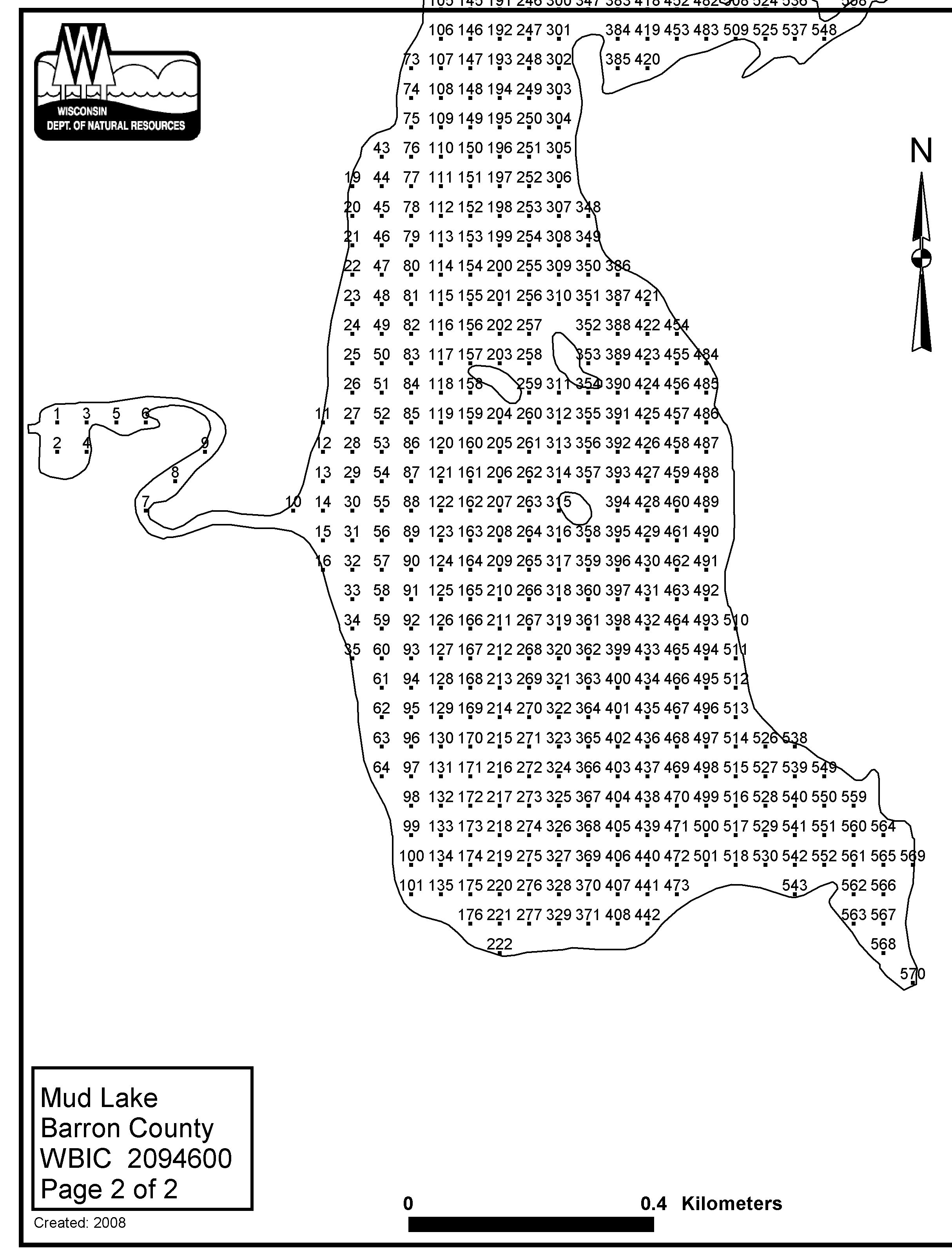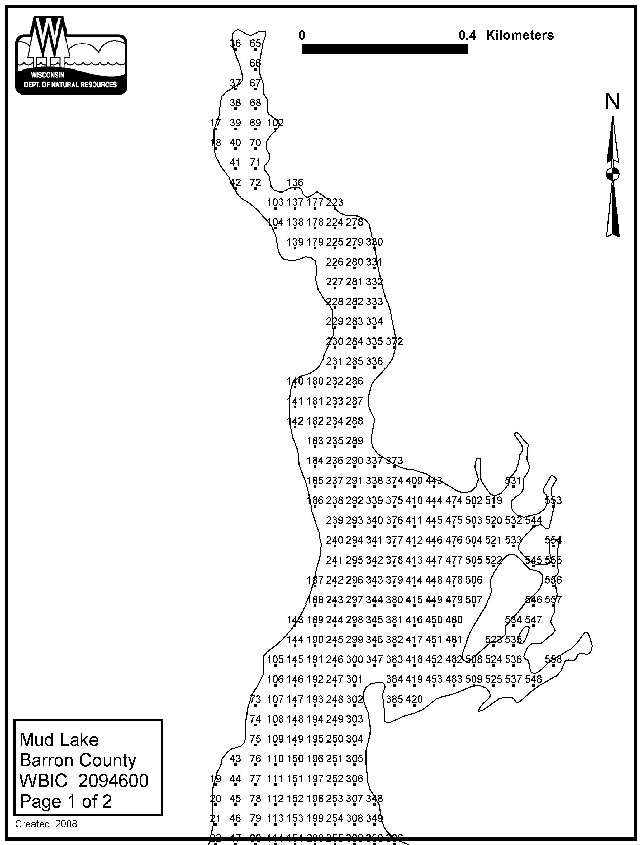 Mud Lake, Barron County - Aquatic Plant Sampling Map (2)(48 mpts)