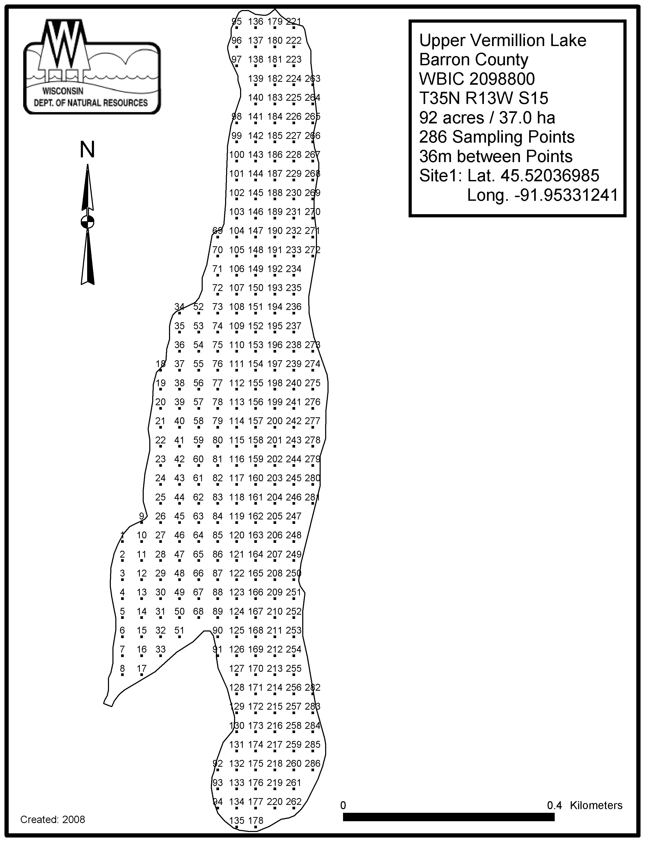 Upper Vermillion Lake, Barron County - Aquatic Plant Sampling Map (36 mpts)