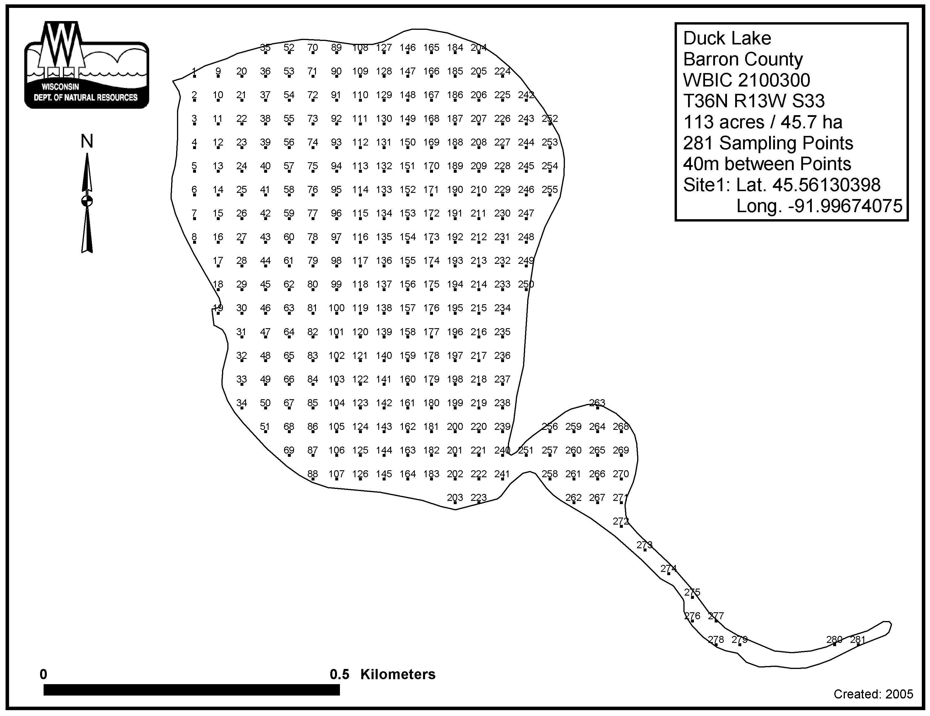 Duck Lake, Barron County - Aquatic Plant Sampling Map (40 mpts)