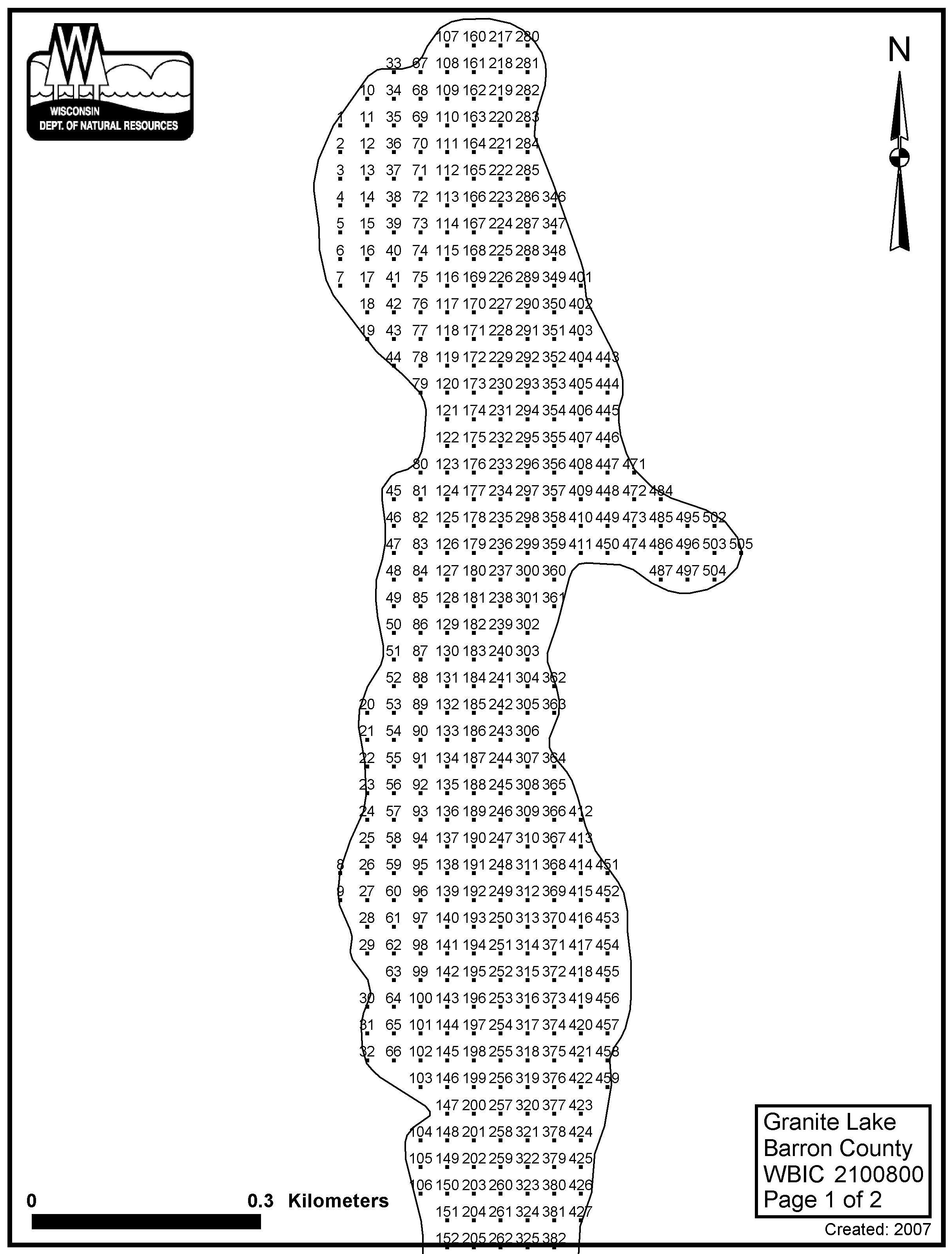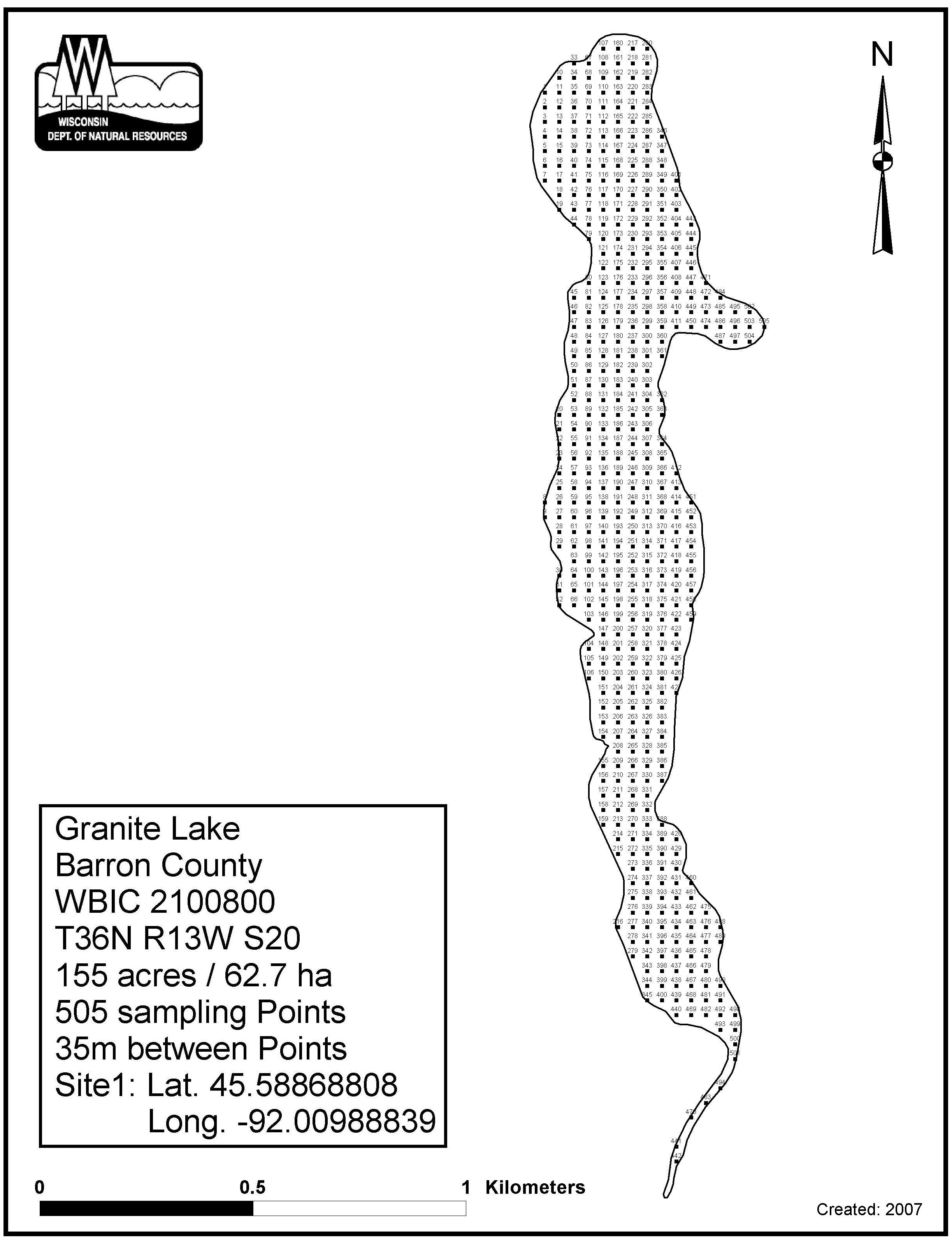 Granite Lake, Barron County - Aquatic Plant Sampling Map (2)(35 mpts)