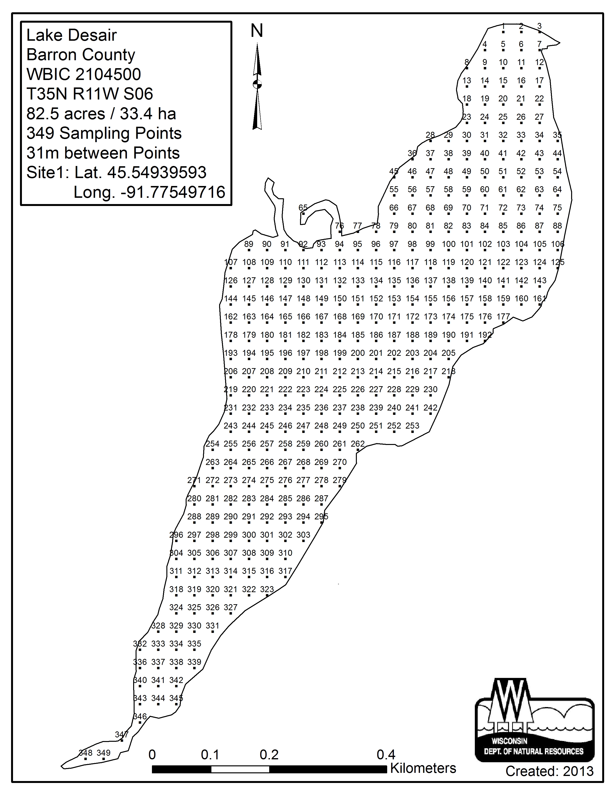 Lake Desair, Barron County - Aquatic Plant Sampling Map (31 mpts)