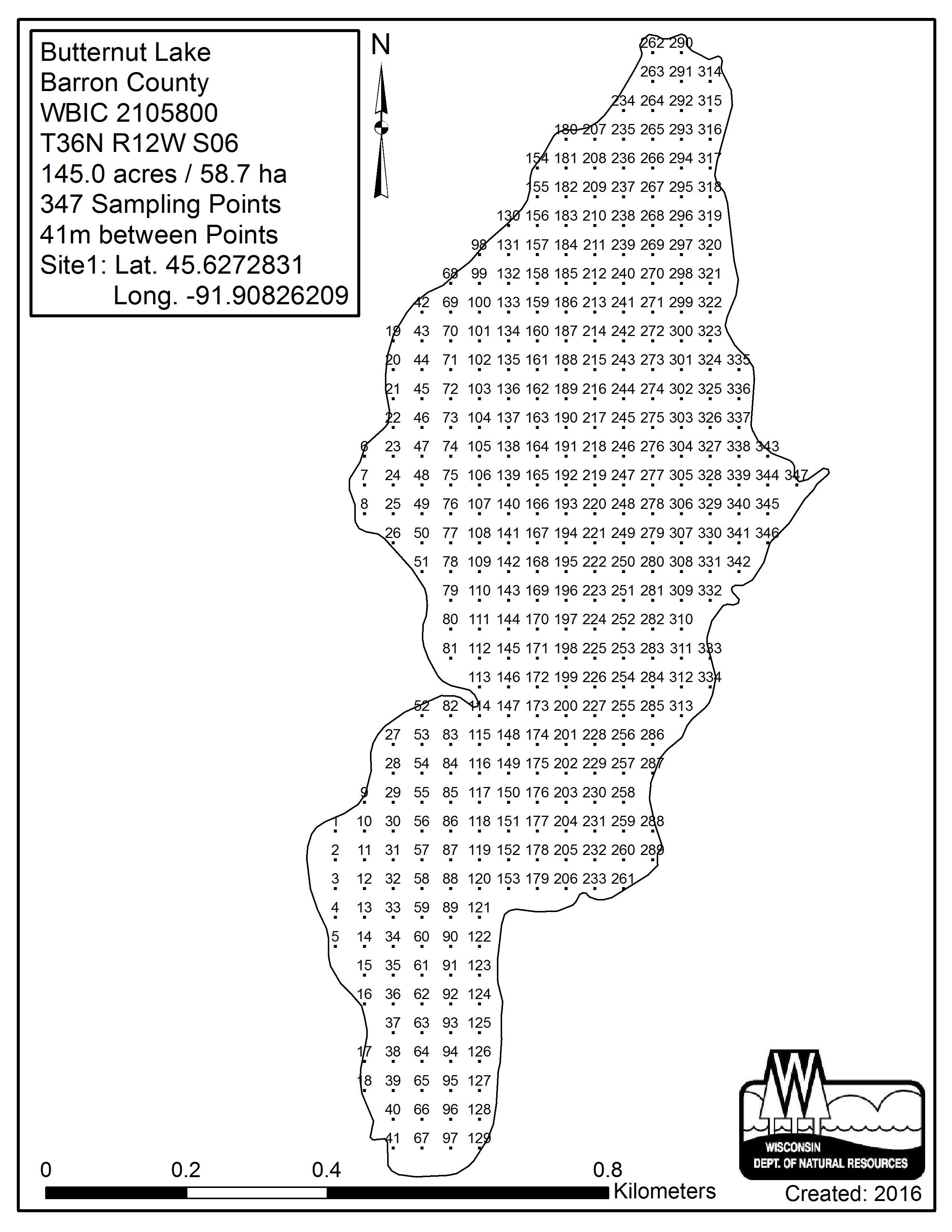 Butternut Lake, Barron County - Aquatic Plant Sampling Map (41 mpts)
