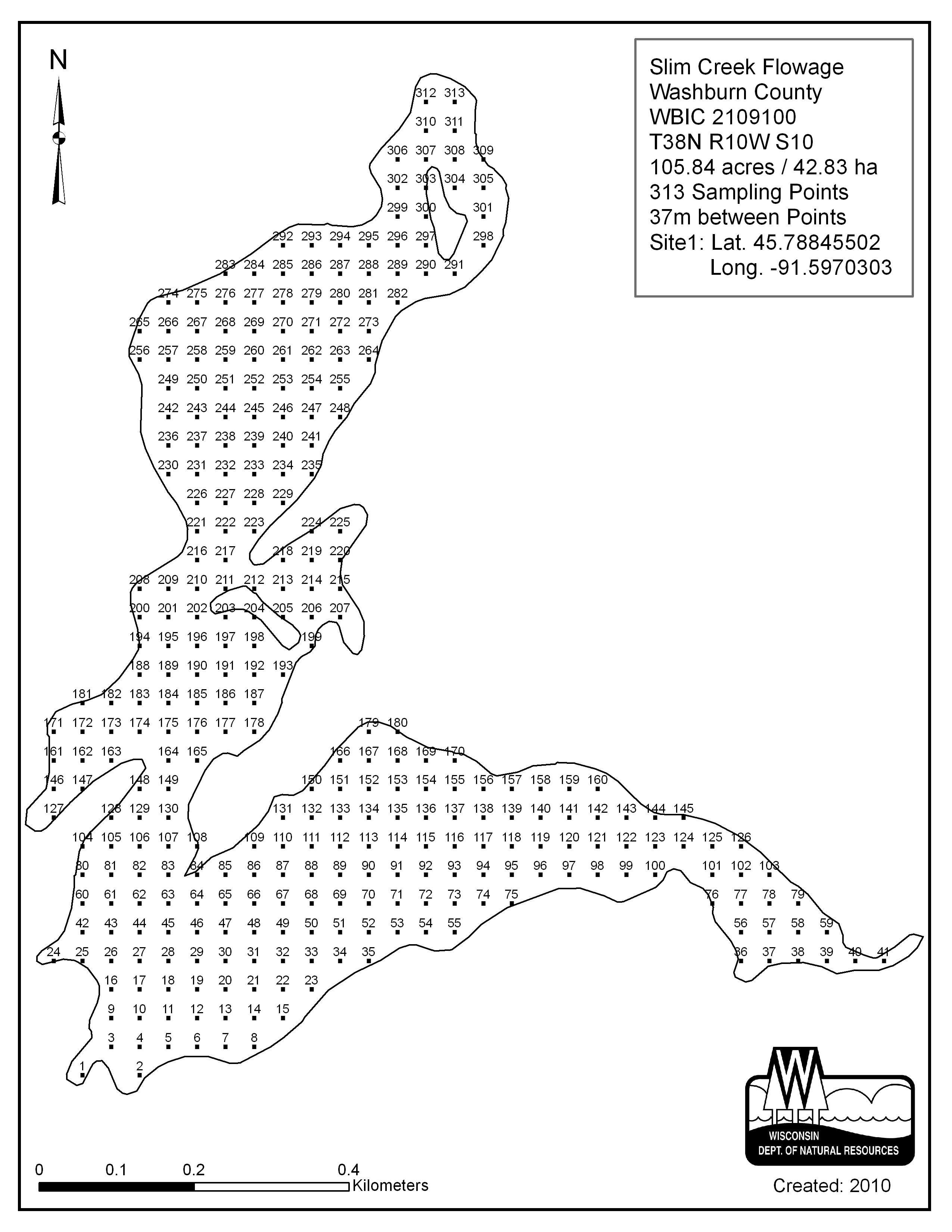 Slim Creek Flowage, Washburn County - Aquatic Plant Sampling Map (37 mpts)