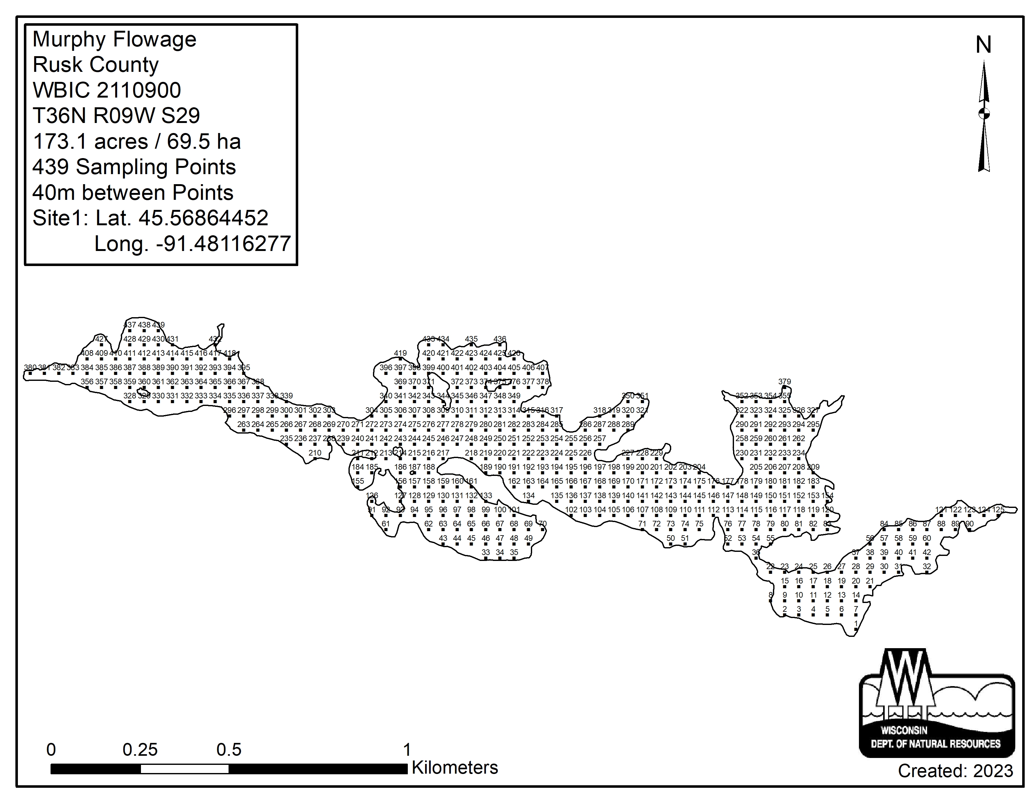 Murphy Flowage, Rusk County - Aquatic Plant Sampling Map (1)(40 mpts)