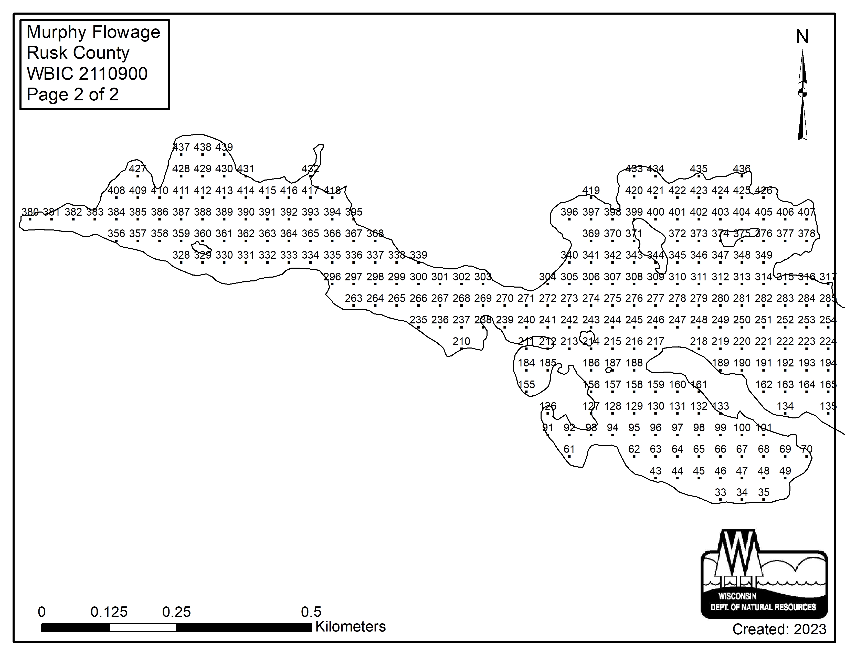 Murphy Flowage, Rusk County - Aquatic Plant Sampling Map (2)(40 mpts)