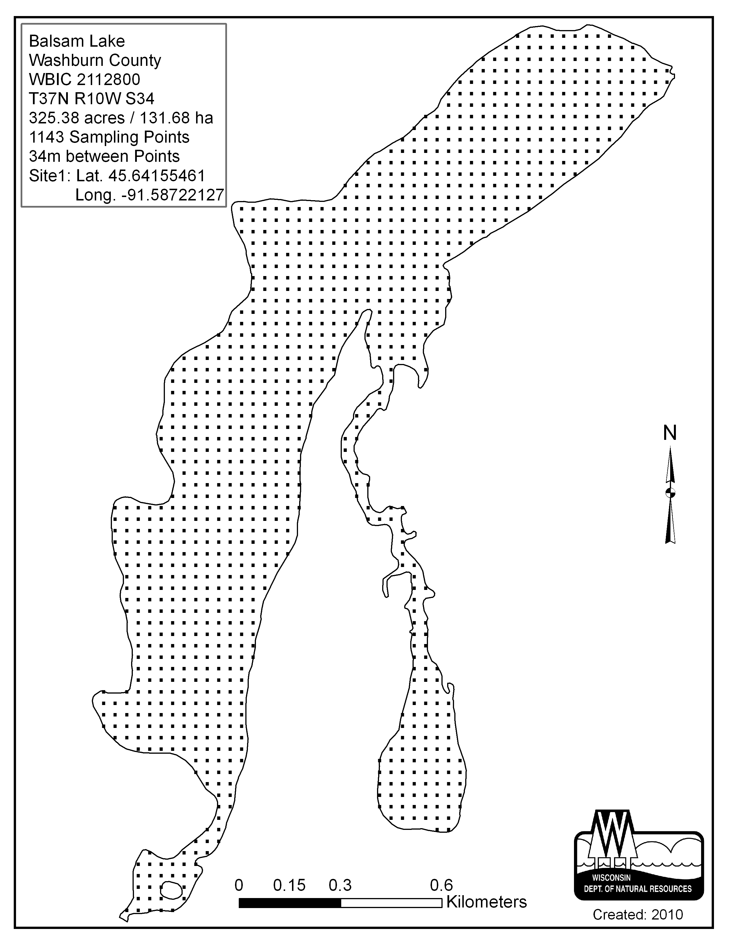 Balsam Lake, Washburn County - Aquatic Plant Sampling Map (34 mpts)