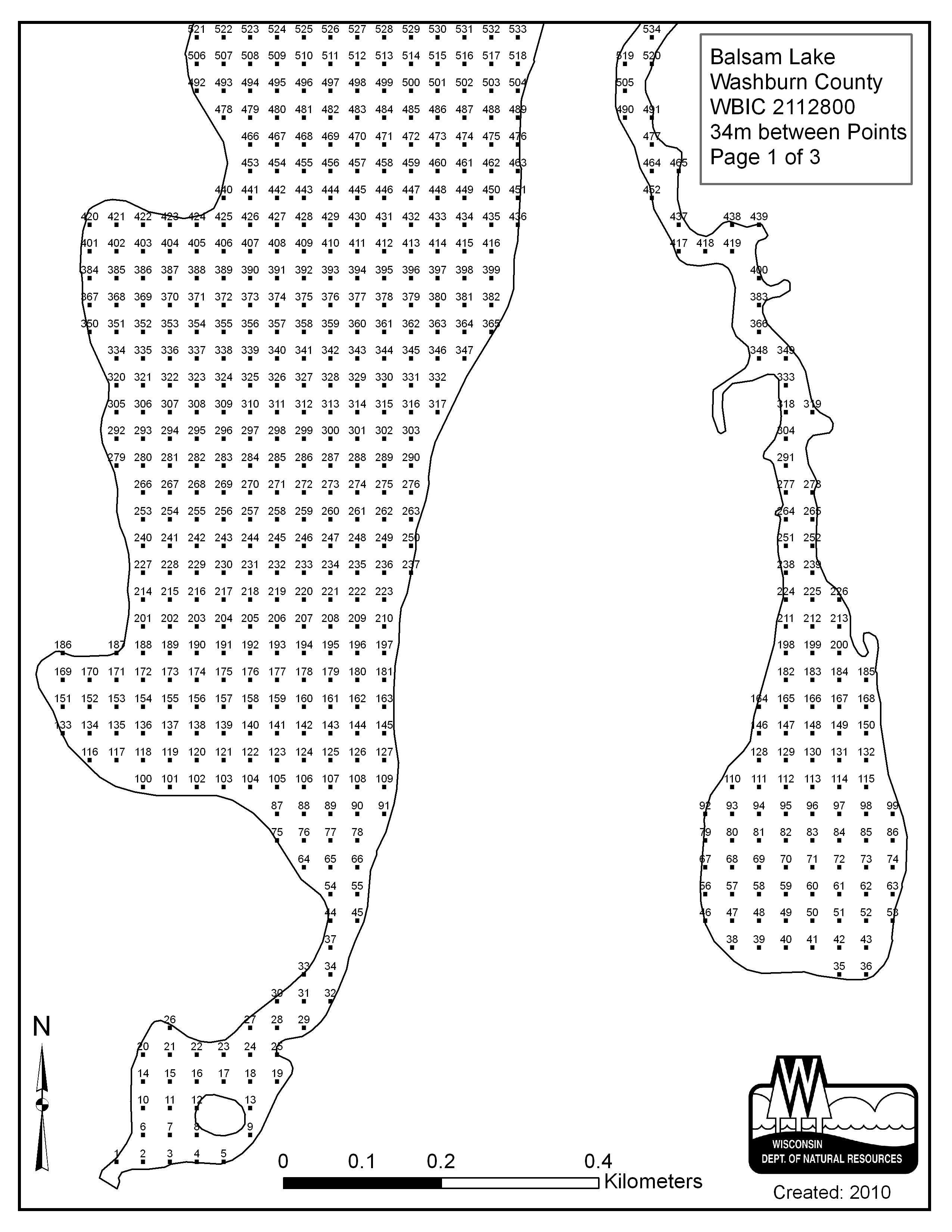 Balsam Lake, Washburn County - Aquatic Plant Sampling Map (1)(34 mpts)