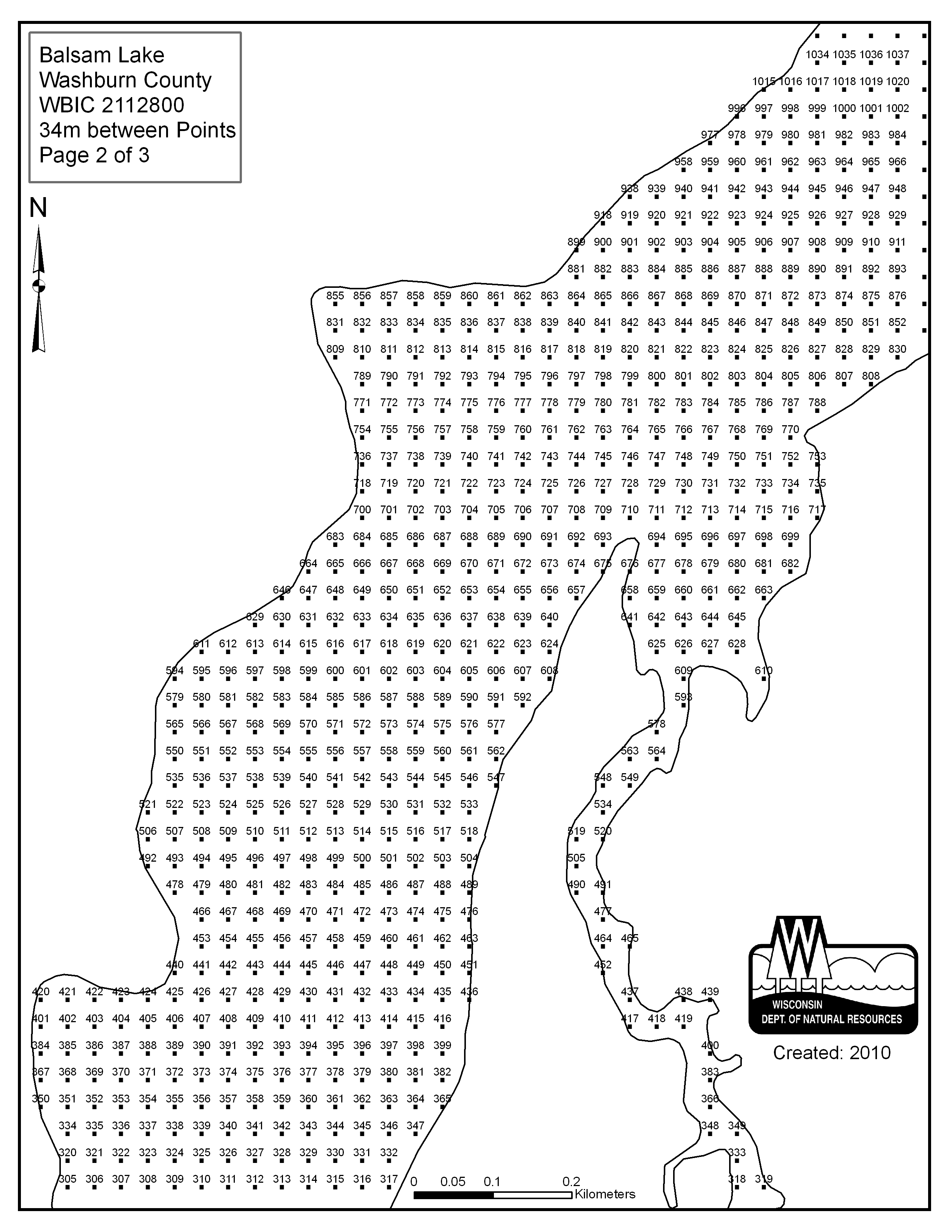 Balsam Lake, Washburn County - Aquatic Plant Sampling Map (2)(34 mpts)