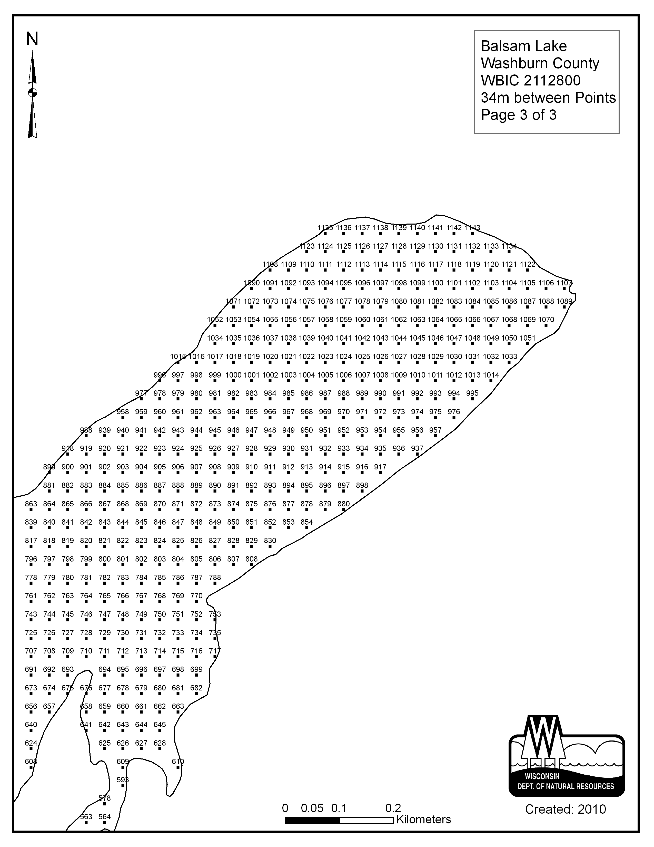 Balsam Lake, Washburn County - Aquatic Plant Sampling Map (3)(34 mpts)