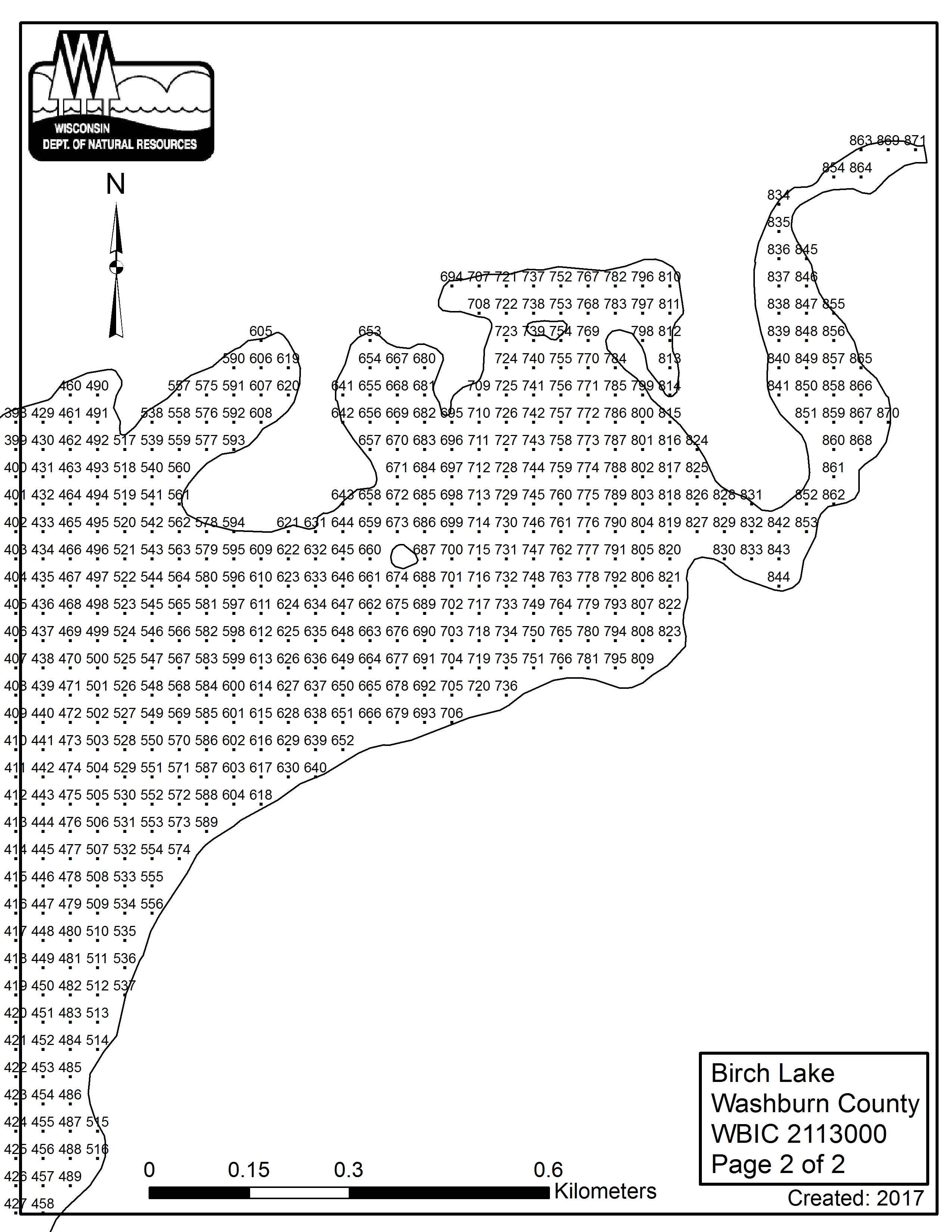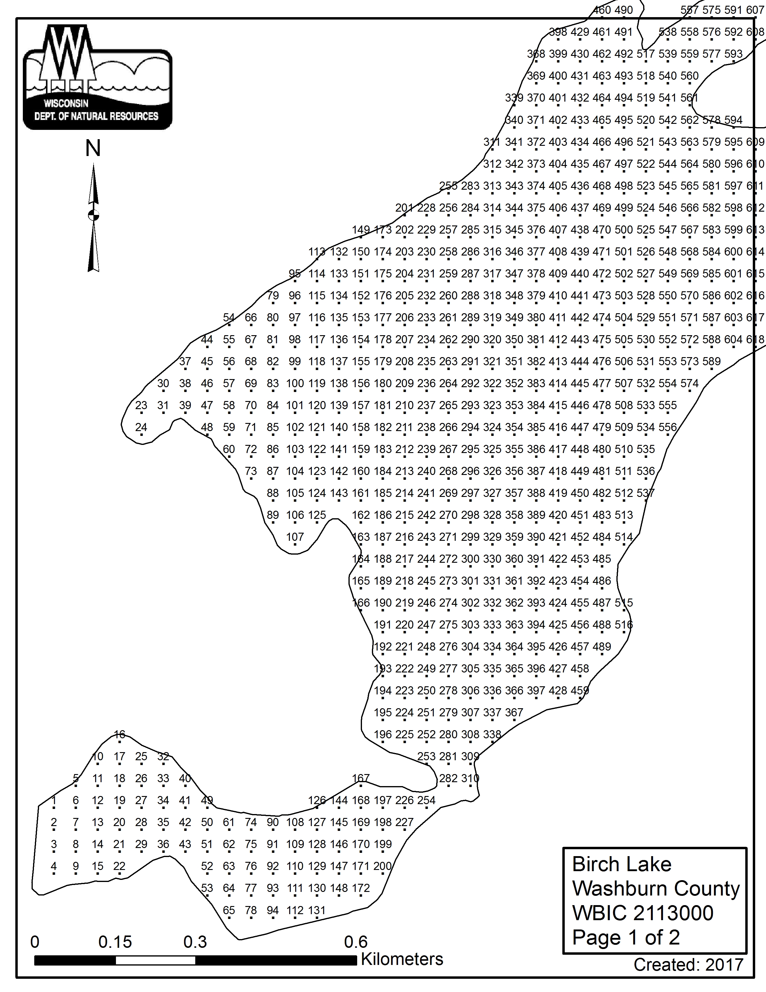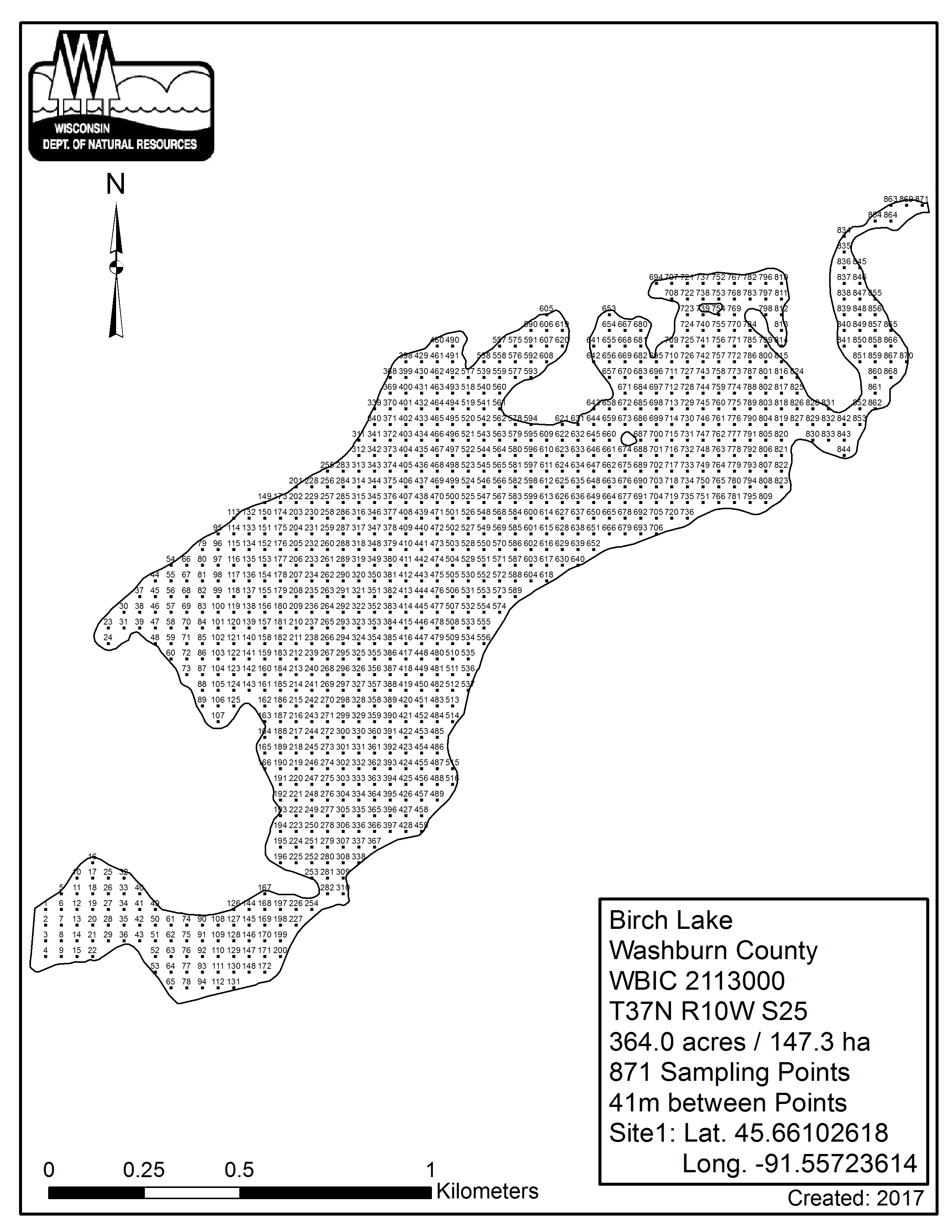 Birch Lake, Washburn County - Aquatic Plant Sampling Map (1)(41 mpts)