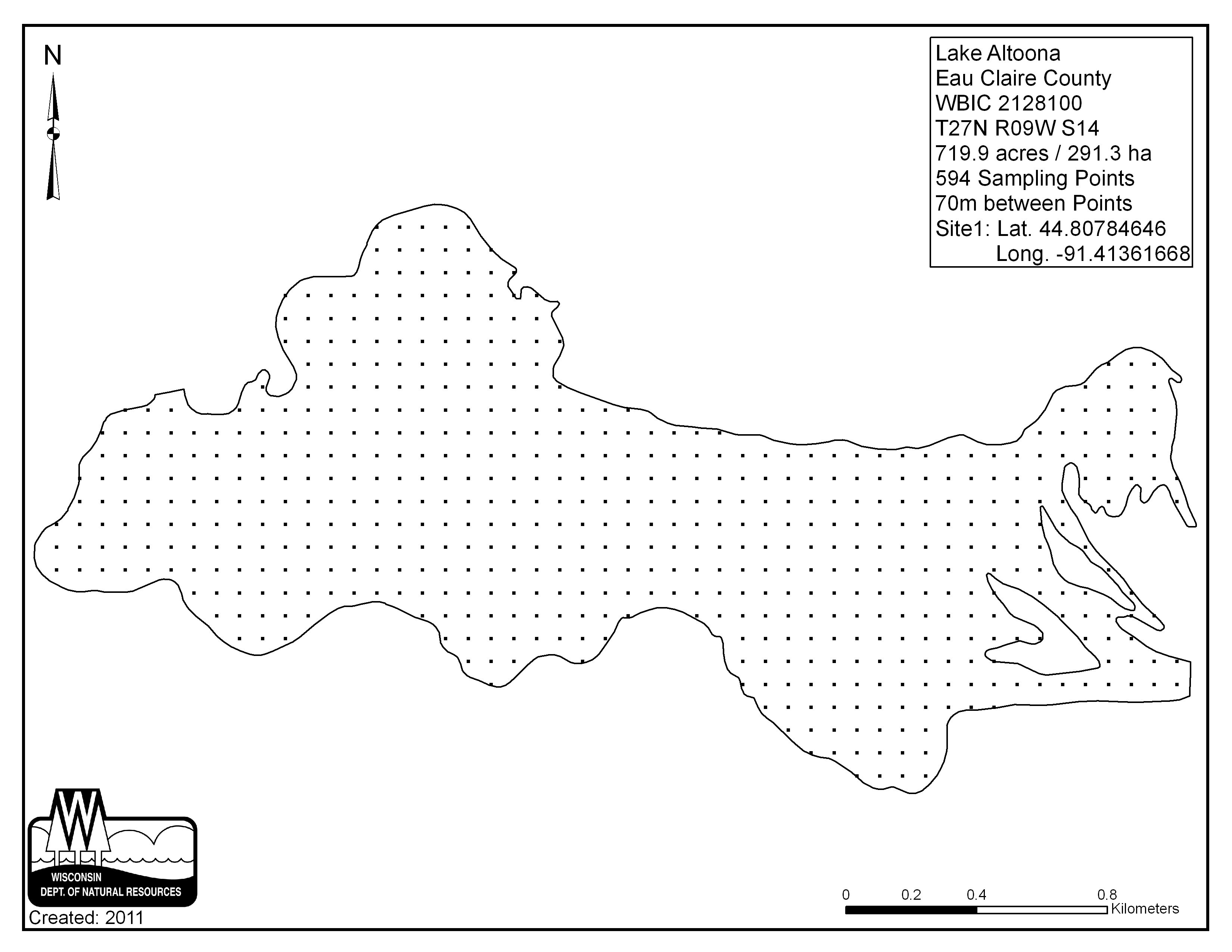 Lake Altoona, Eau Claire County - Aquatic Plant Sampling Map (70 mpts)