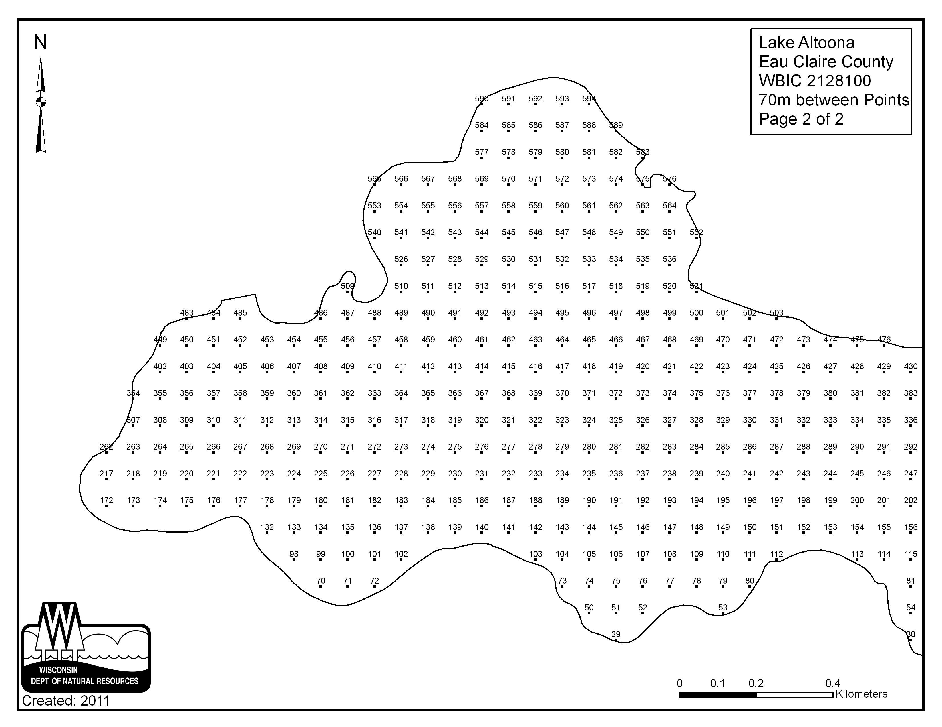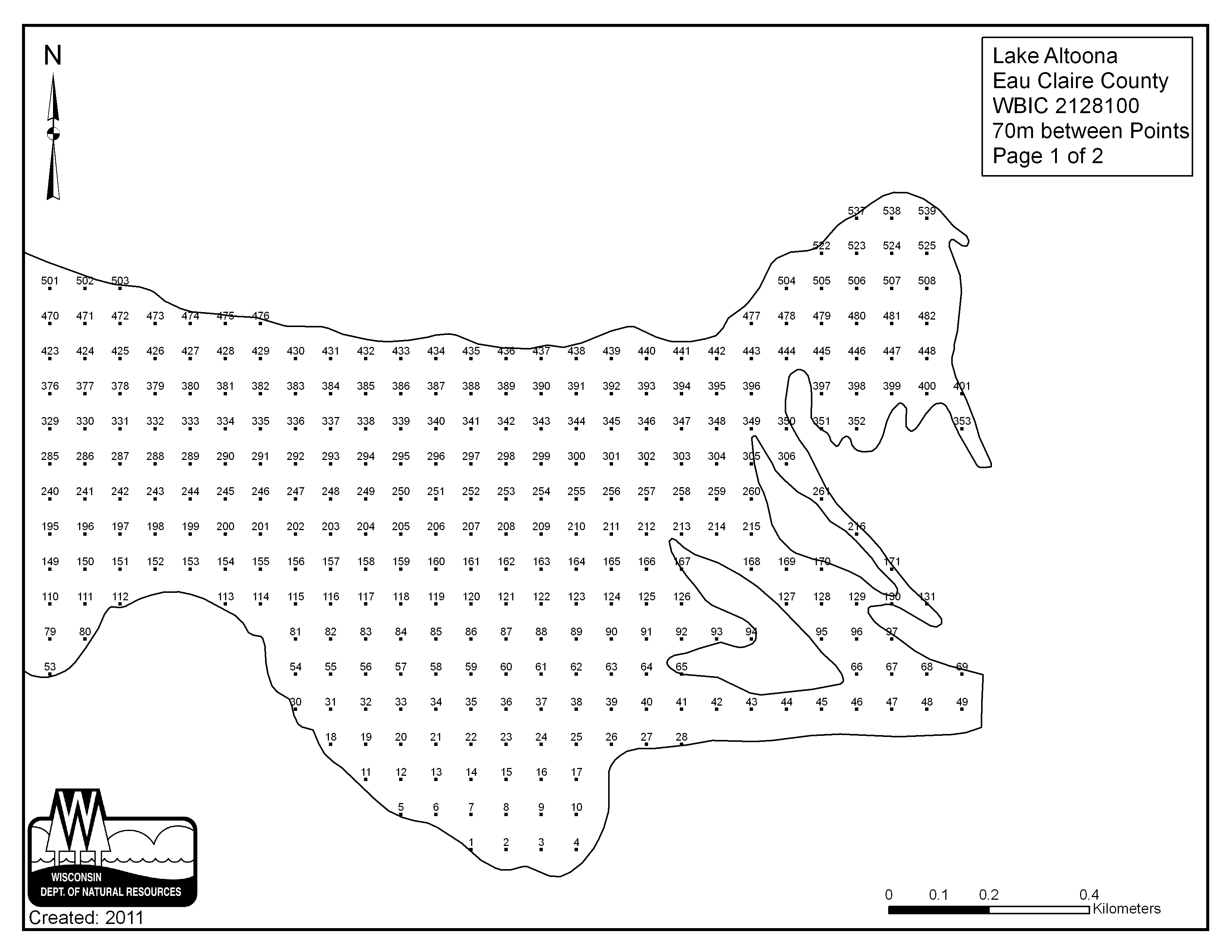 Lake Altoona, Eau Claire County - Aquatic Plant Sampling Map (2)(70 mpts)
