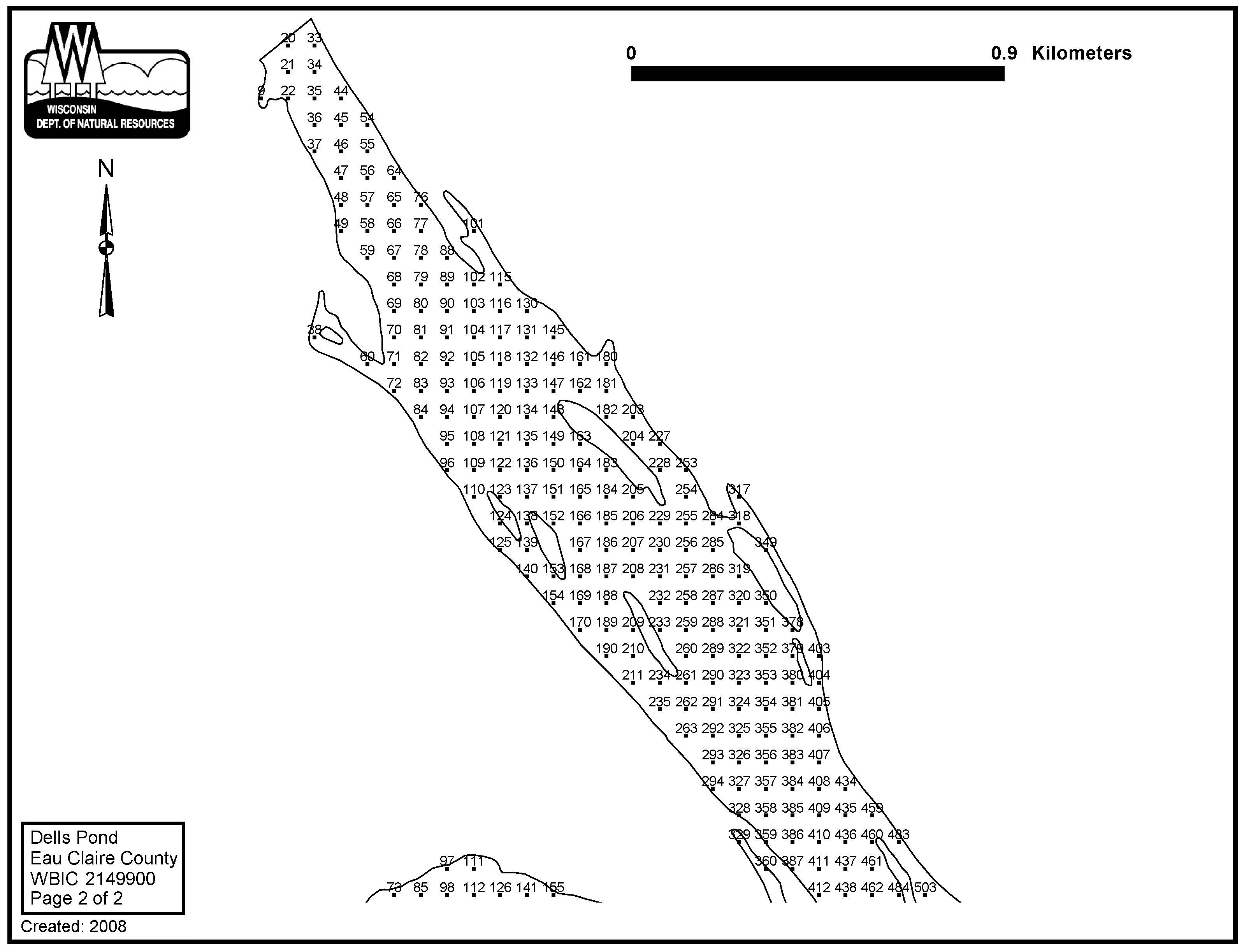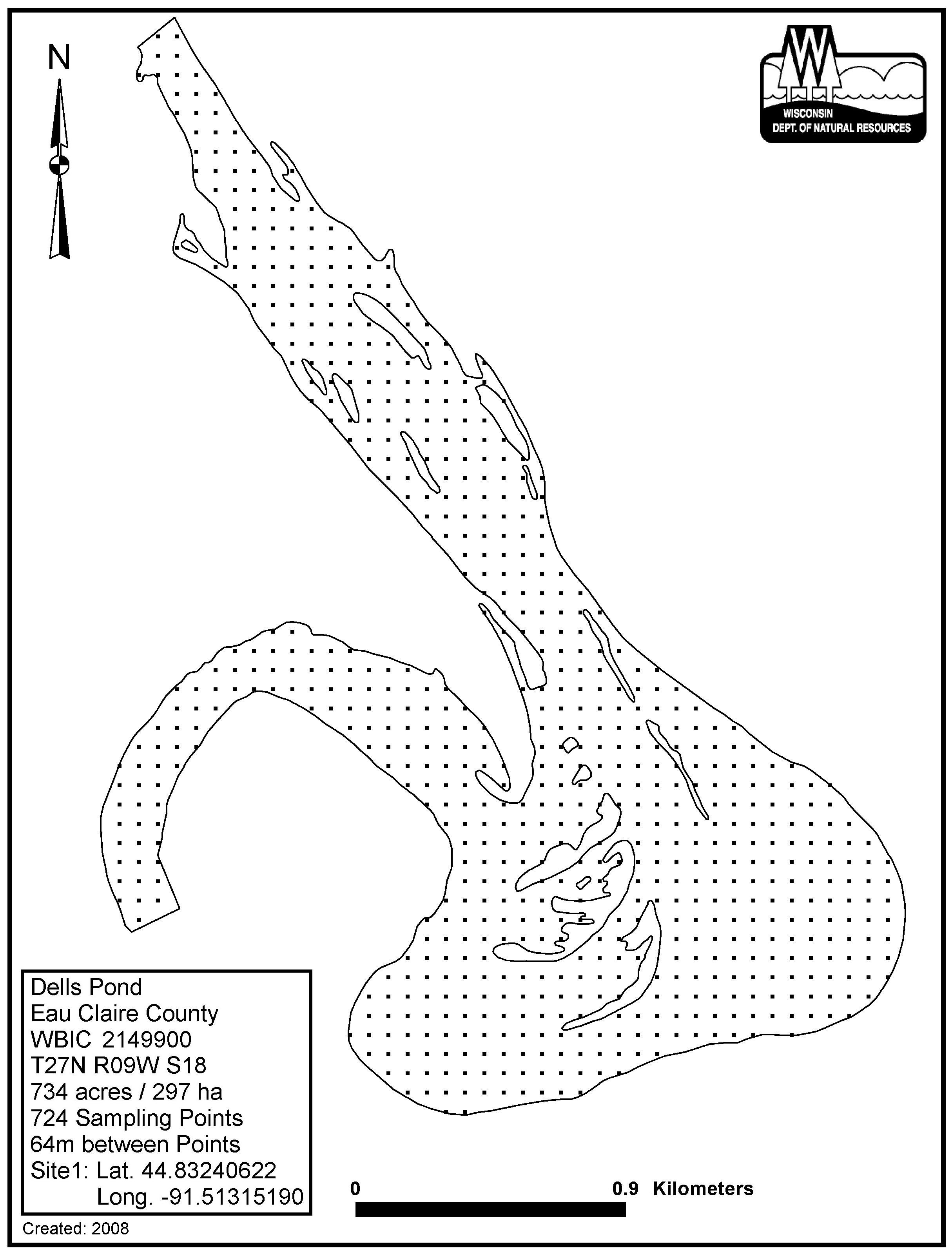 Dells Pond, Eau Claire County - Aquatic Plant Sampling Map (2)(64 mpts)