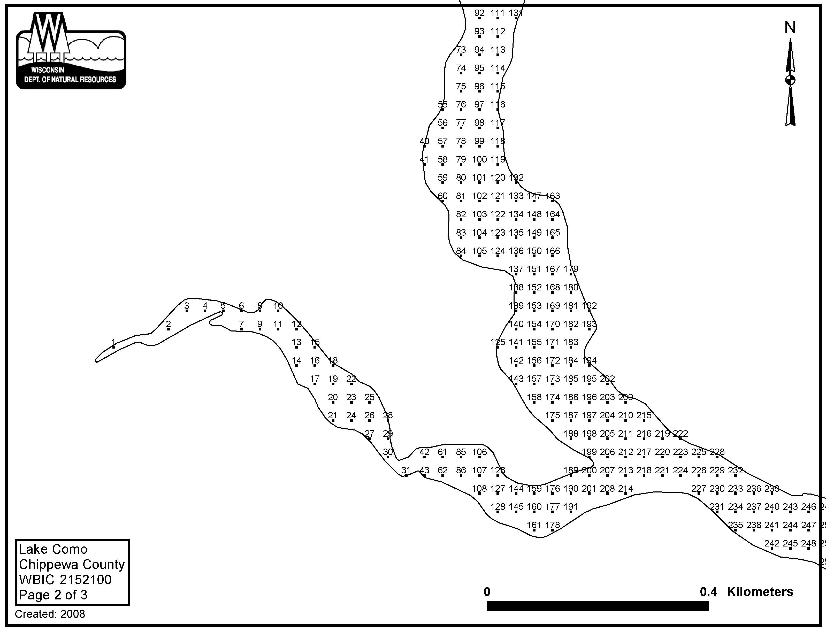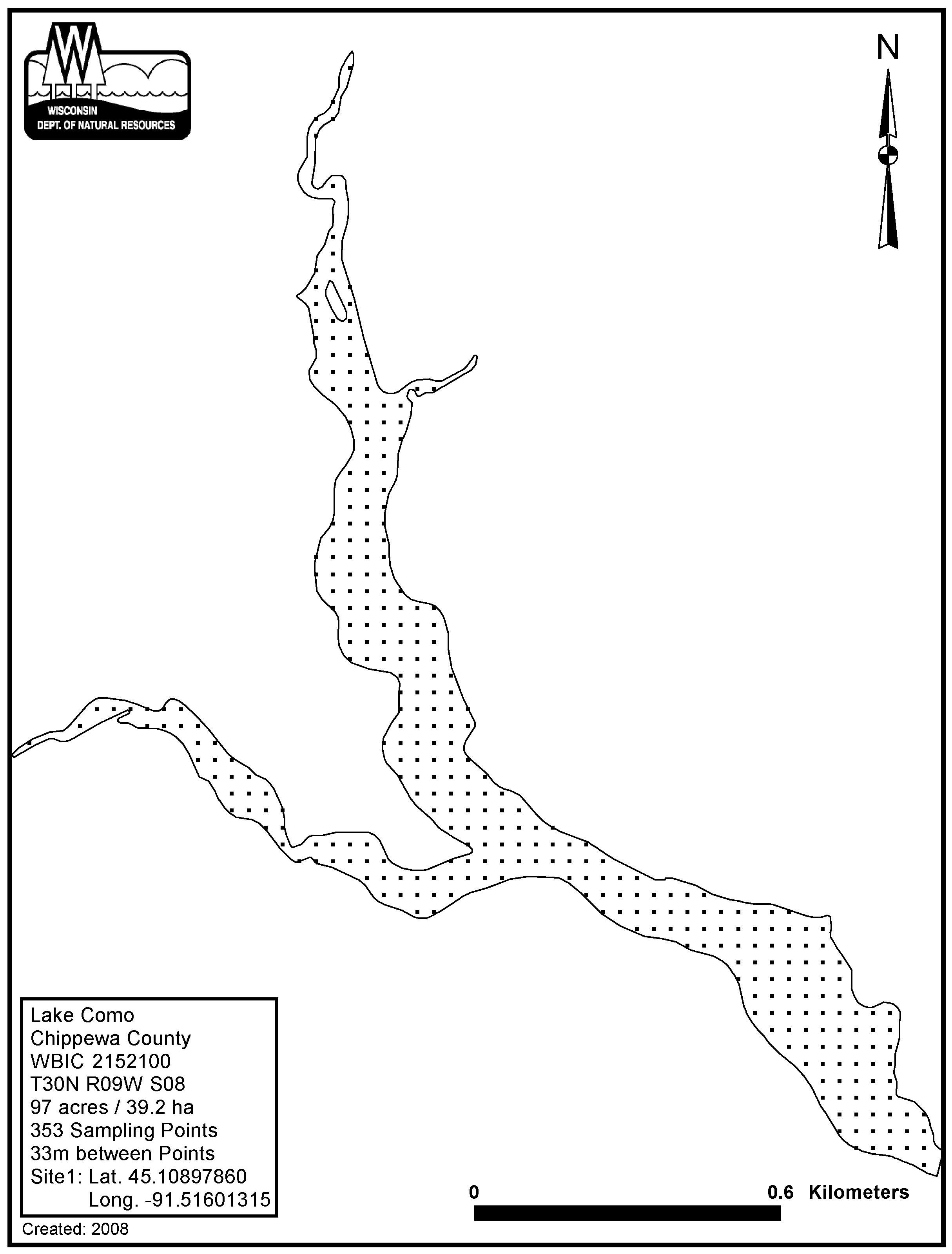 Como Lake (Bloomer Mill Pond), Chippewa County - Aquatic Plant Sampling Map (3)(33 mpts)