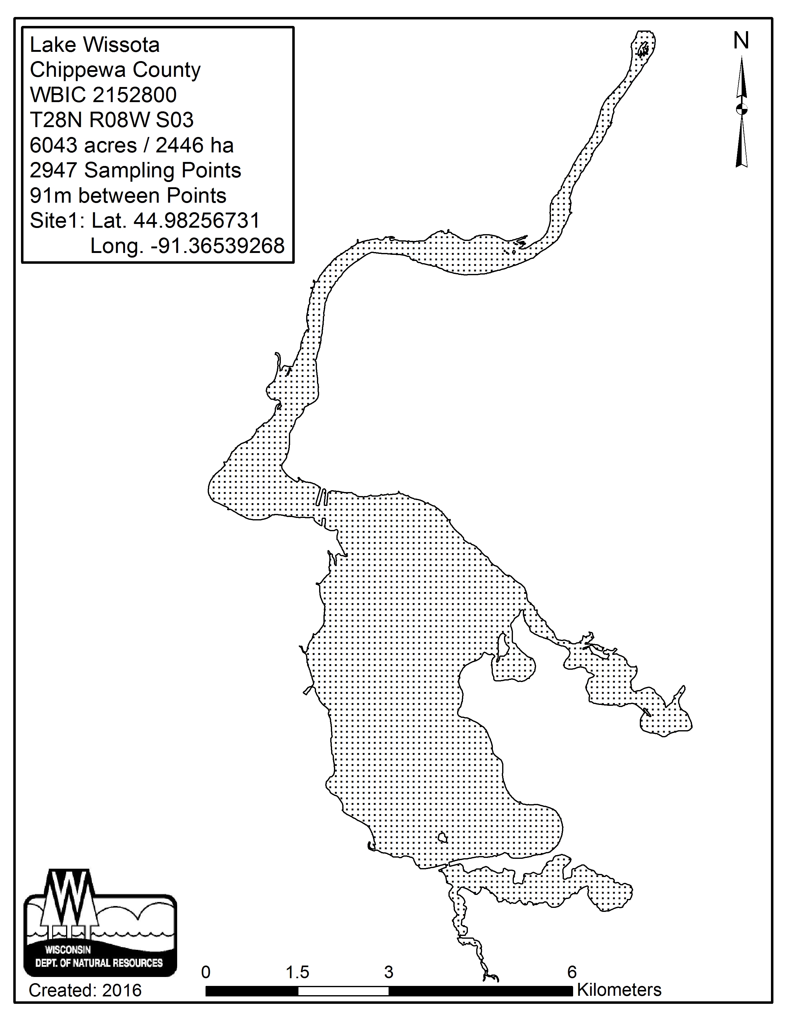 Lake Wissota, Chippewa County - Aquatic Plant Sampling Map (6)(91 mpts)