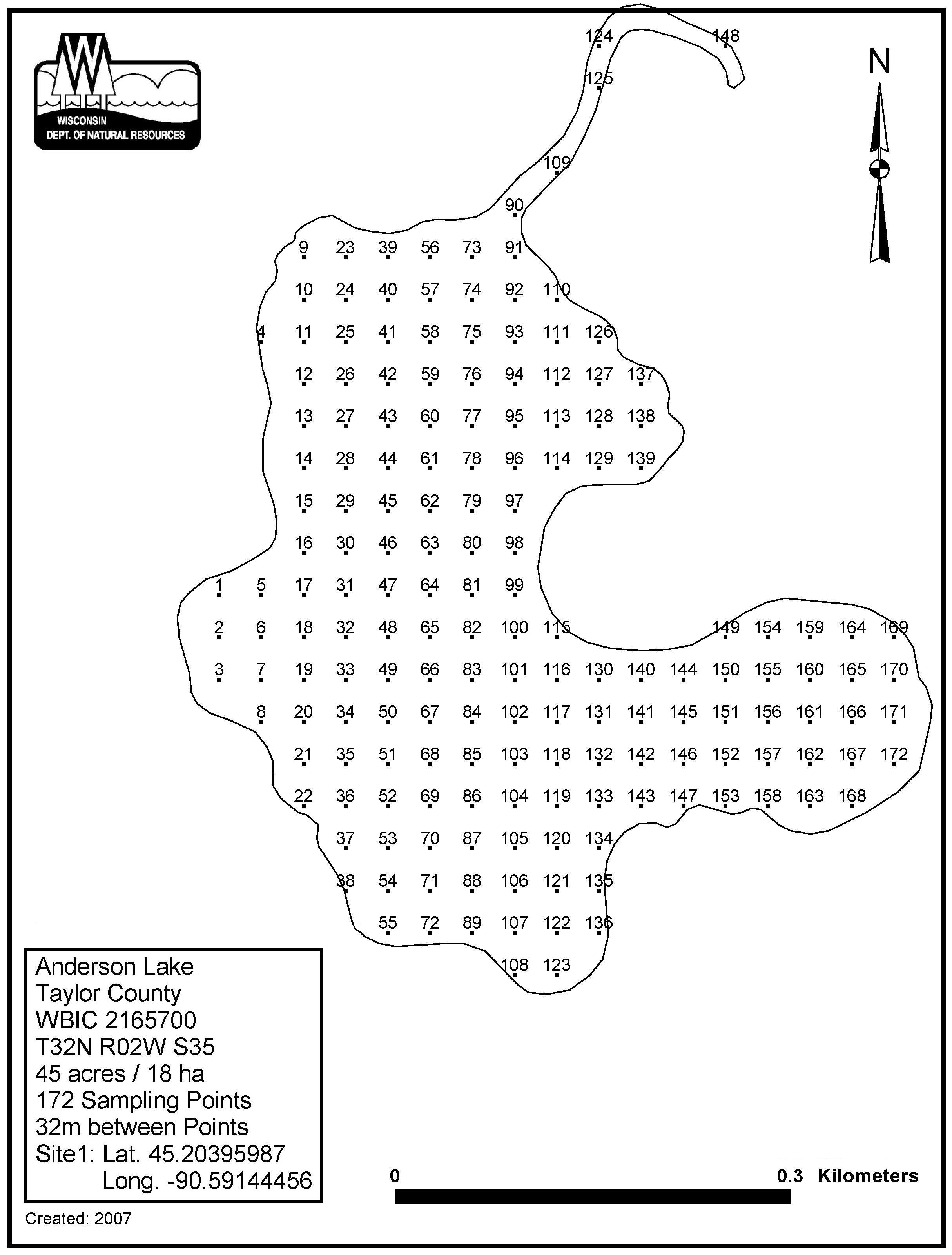 Anderson Lake, Taylor County - Aquatic Plant Sampling Map (32 mpts)