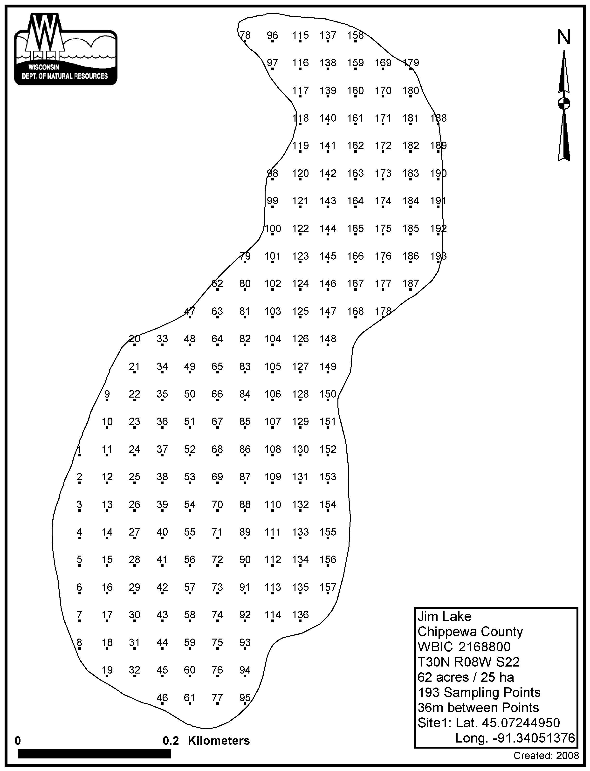Jim Lake, Chippewa County - Aquatic Plant Sampling Map (36 mpts)