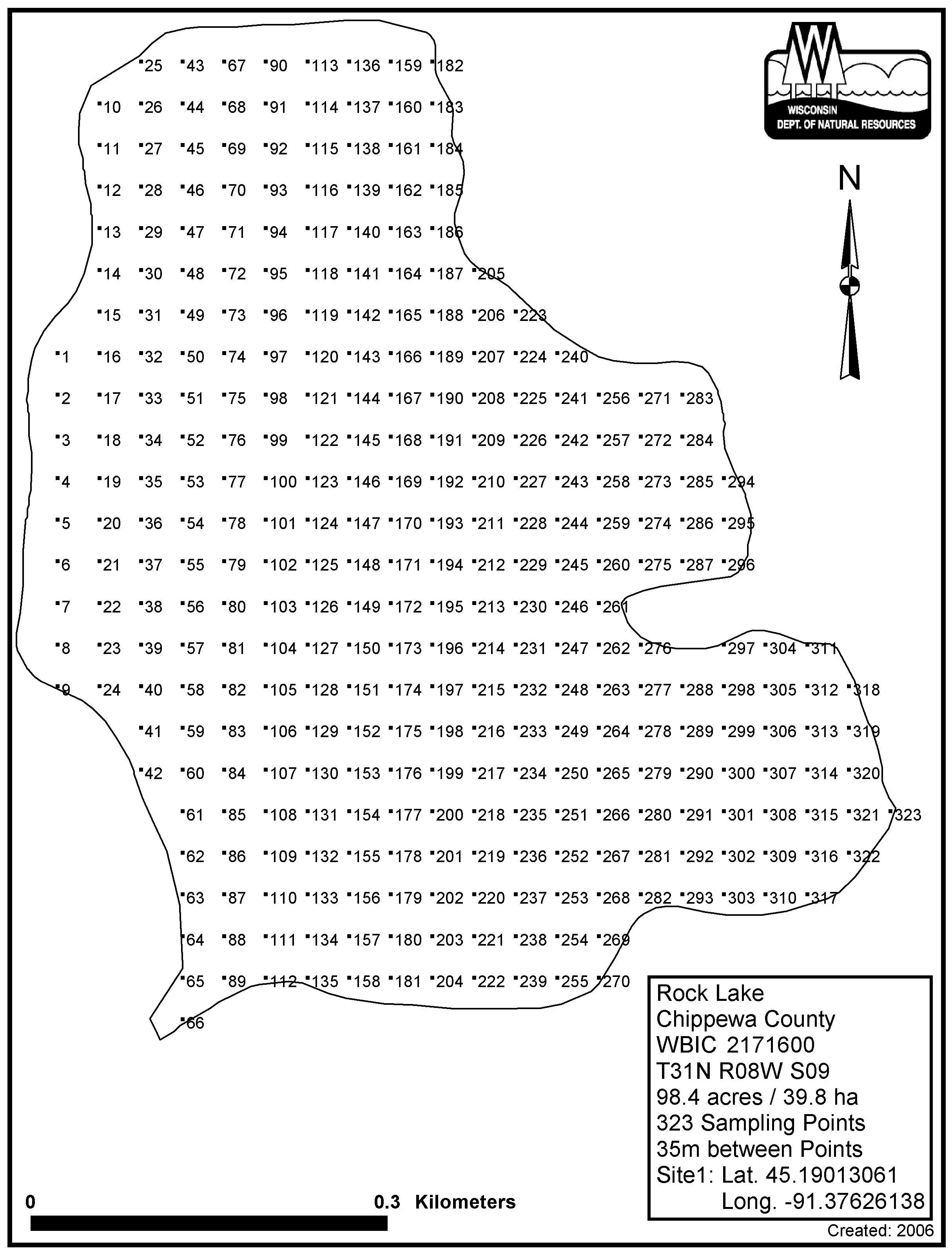 Rock Lake, Chippewa County - Aquatic Plant Sampling Map (35 mpts)