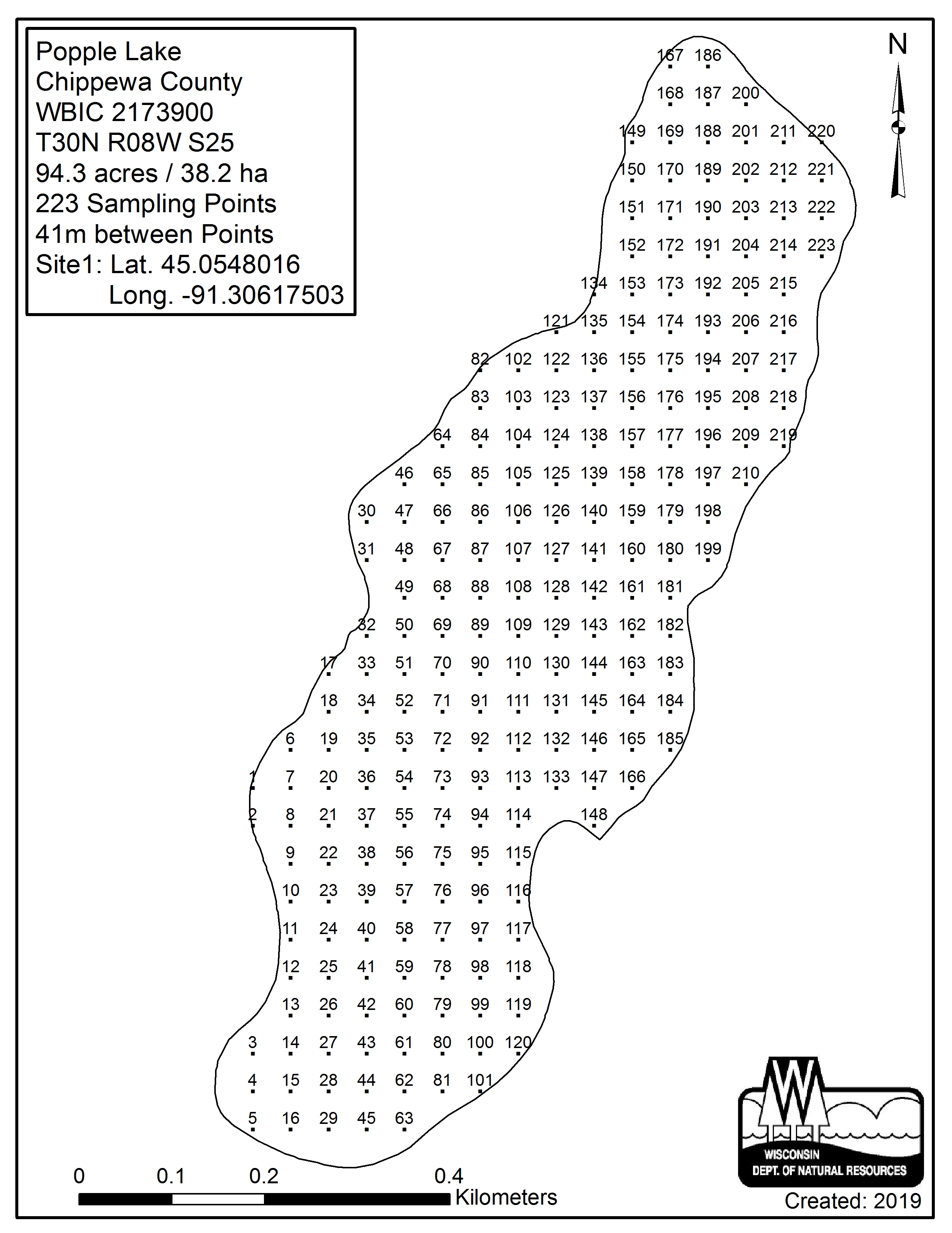 Popple Lake, Chippewa County - Aquatic Plant Sampling Map (41 mpts)