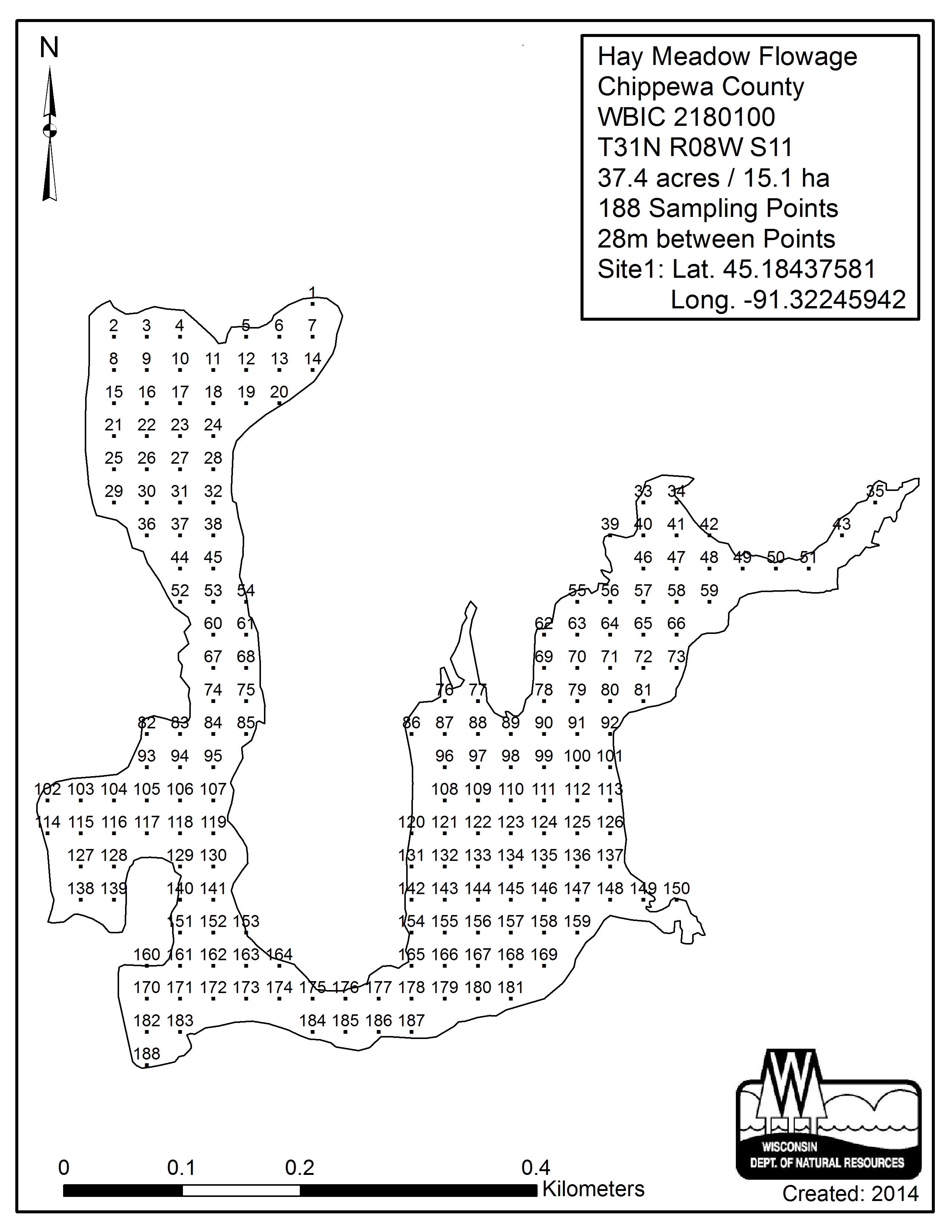 Hay Meadow Flowage, Chippewa County - Aquatic Plant Sampling Map (28 mpts)
