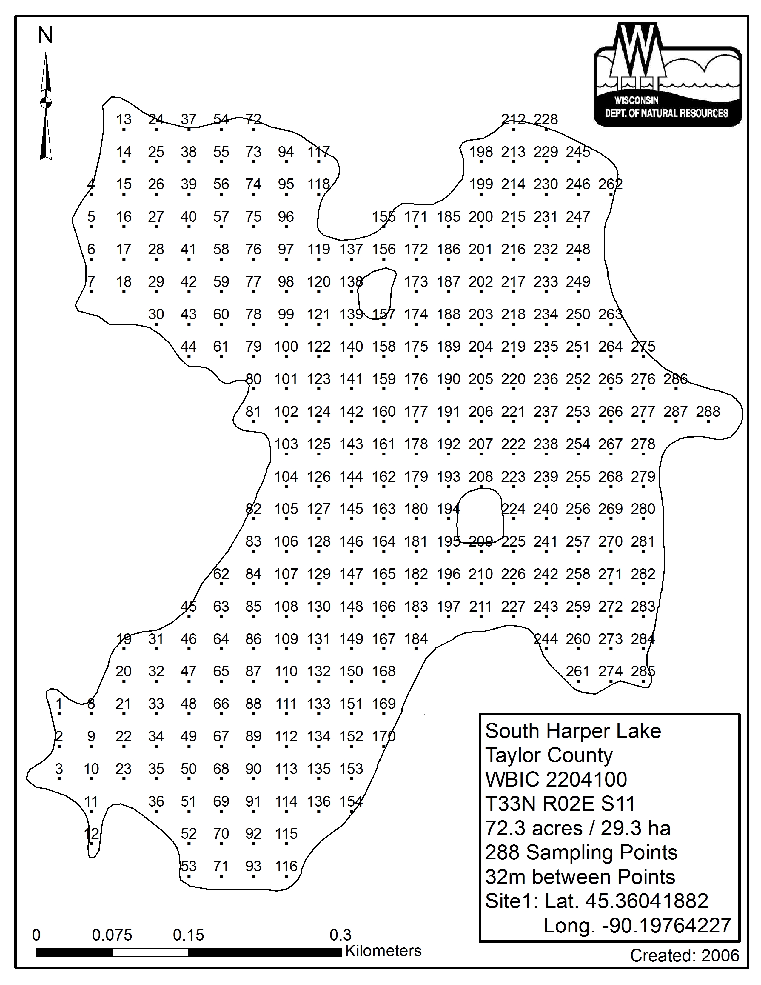 South Harper Lake, Taylor County - Aquatic Plant Sampling Map (32 mpts)