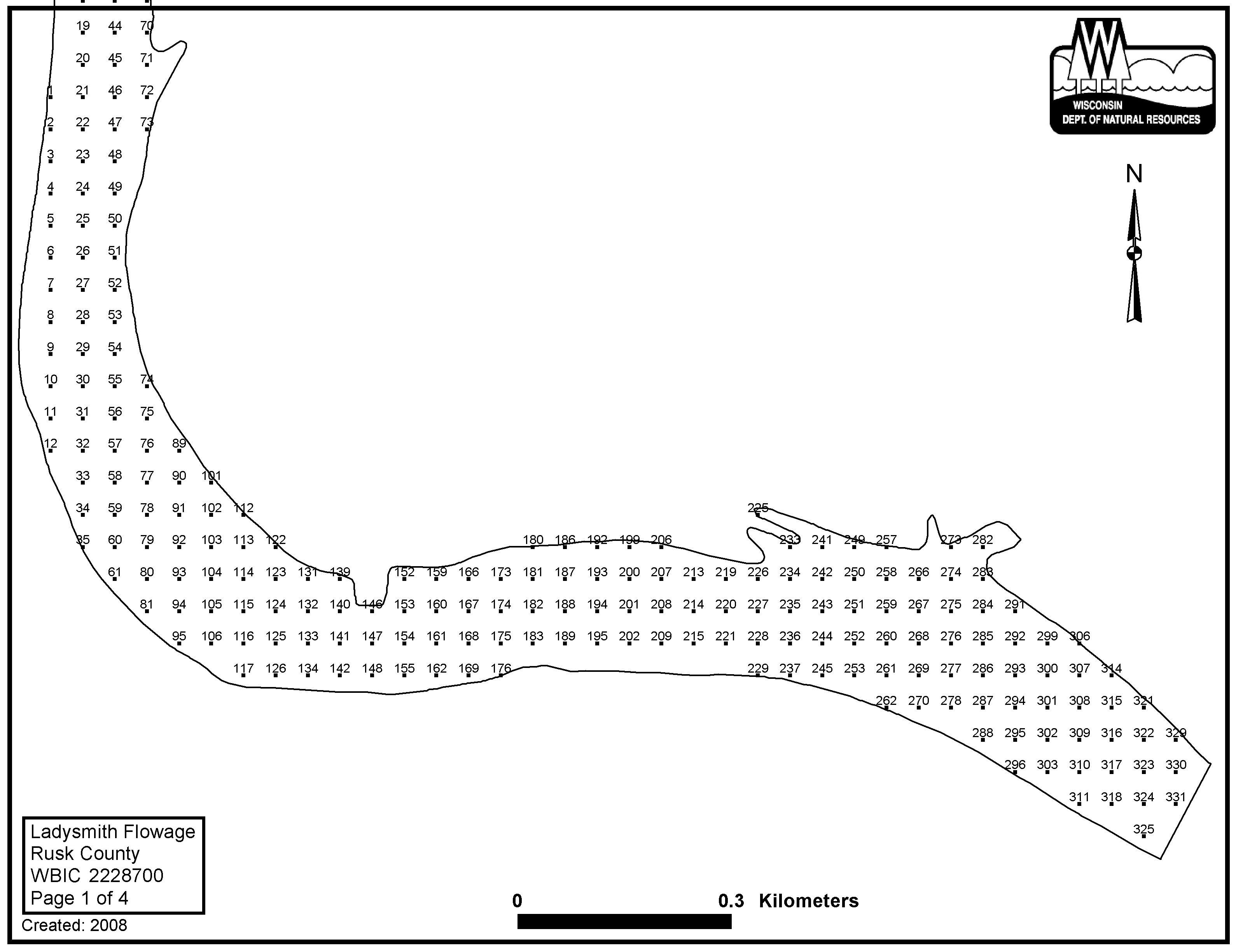 Ladysmith Flowage, Rusk County - Aquatic Plant Sampling Map (4)(45 mpts)