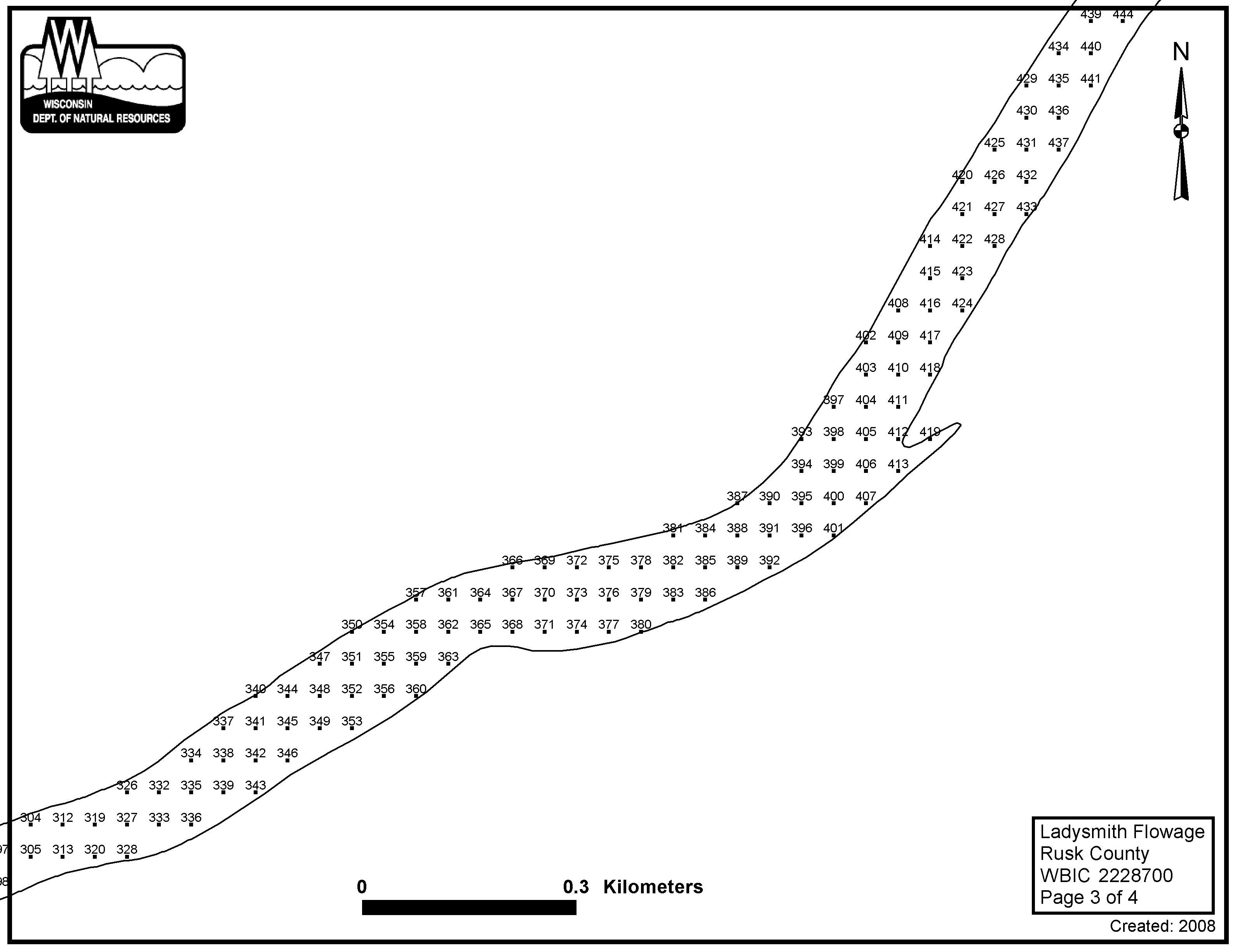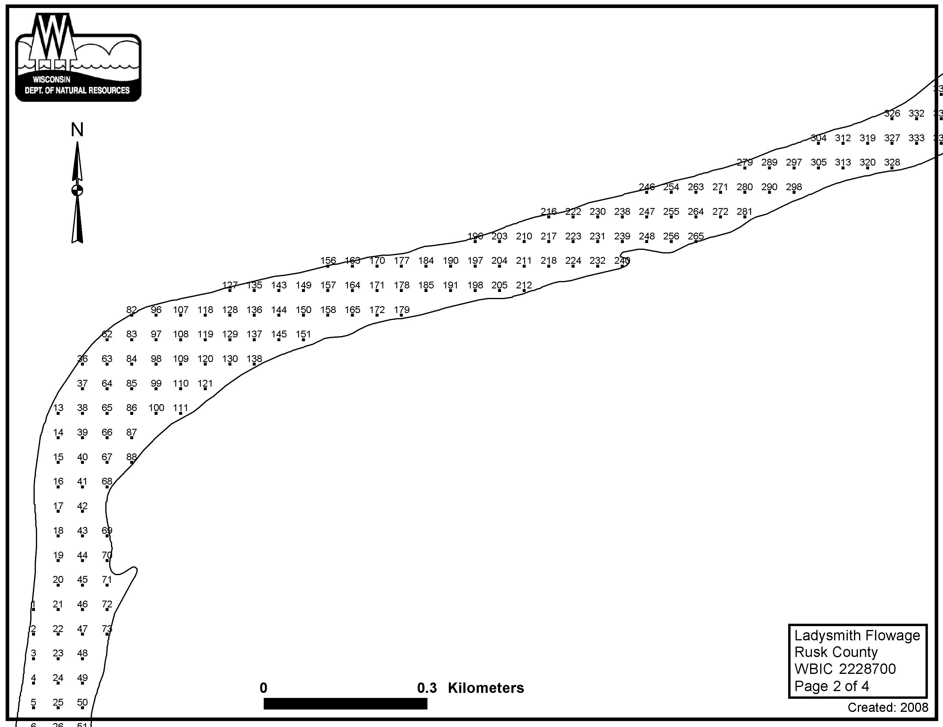 Ladysmith Flowage, Rusk County - Aquatic Plant Sampling Map (3)(45 mpts)