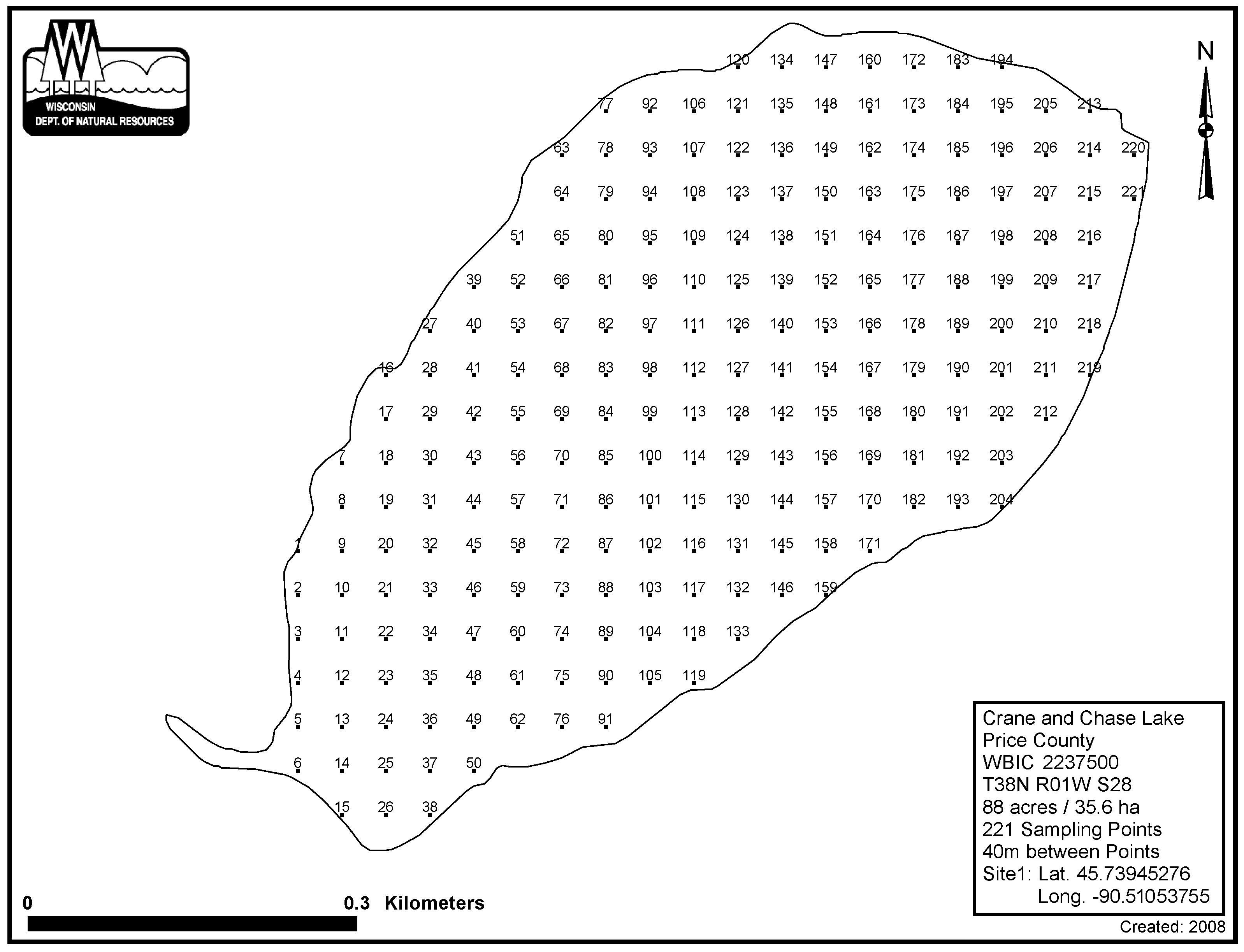 Crane and Chase Lake, Price County - Aquatic Plant Sampling Map (40 mpts)