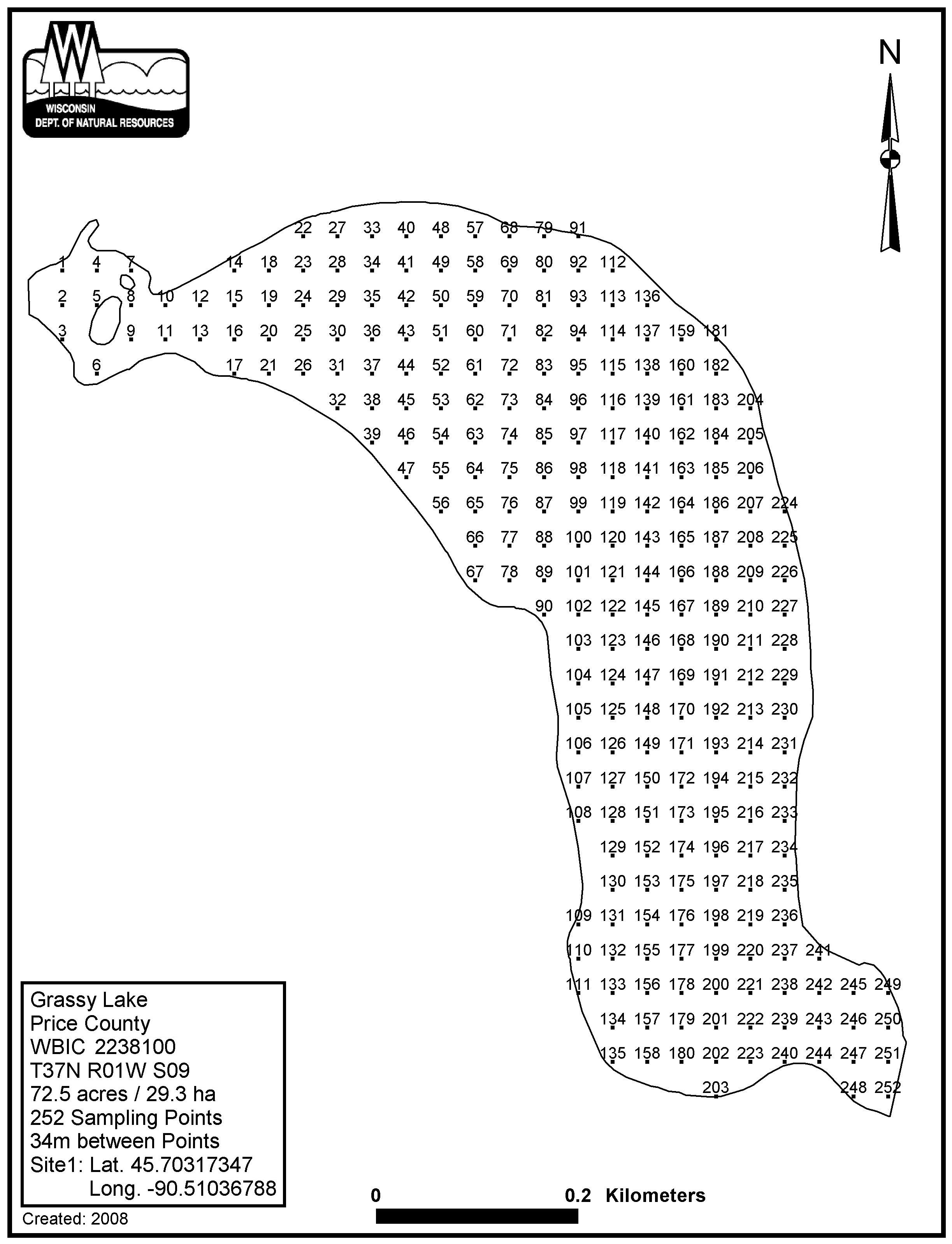 Grassy Lake, Price County - Aquatic Plant Sampling Map (34 mpts)
